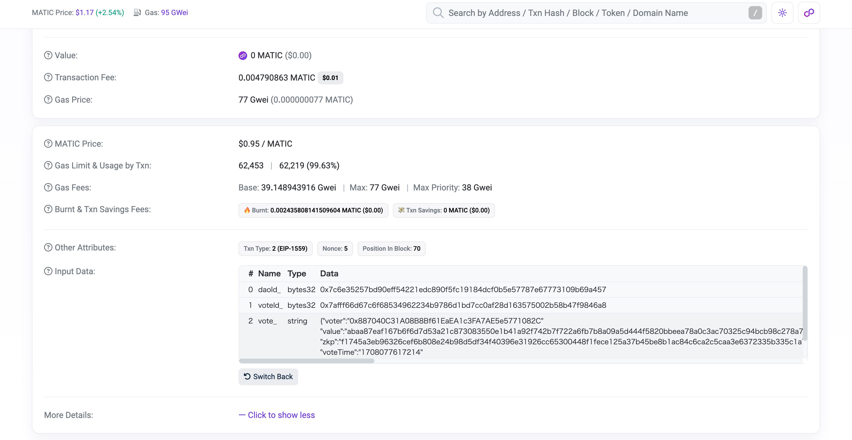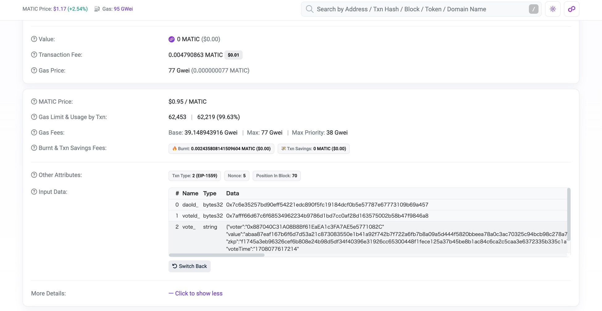 日本DAO協会においても、Polygonチェーン上のデータをPolygonscan(https://polygonscan.com/)等の外部サイトで確認することで