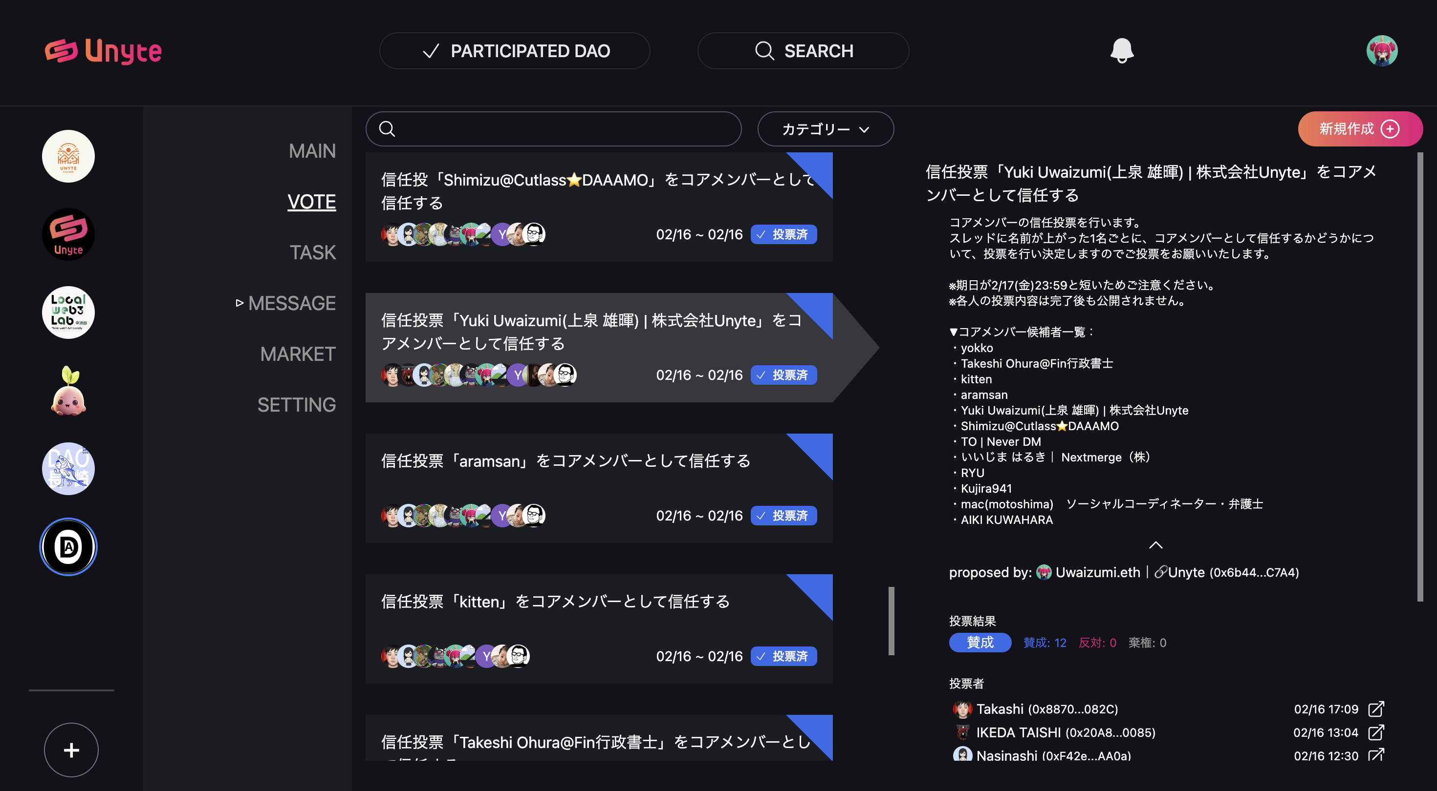 協会の設立準備に関わるメンバーのみが投票をできる環境の構築のため、Unyteを通じてメンバーシップトークンが発行されています。