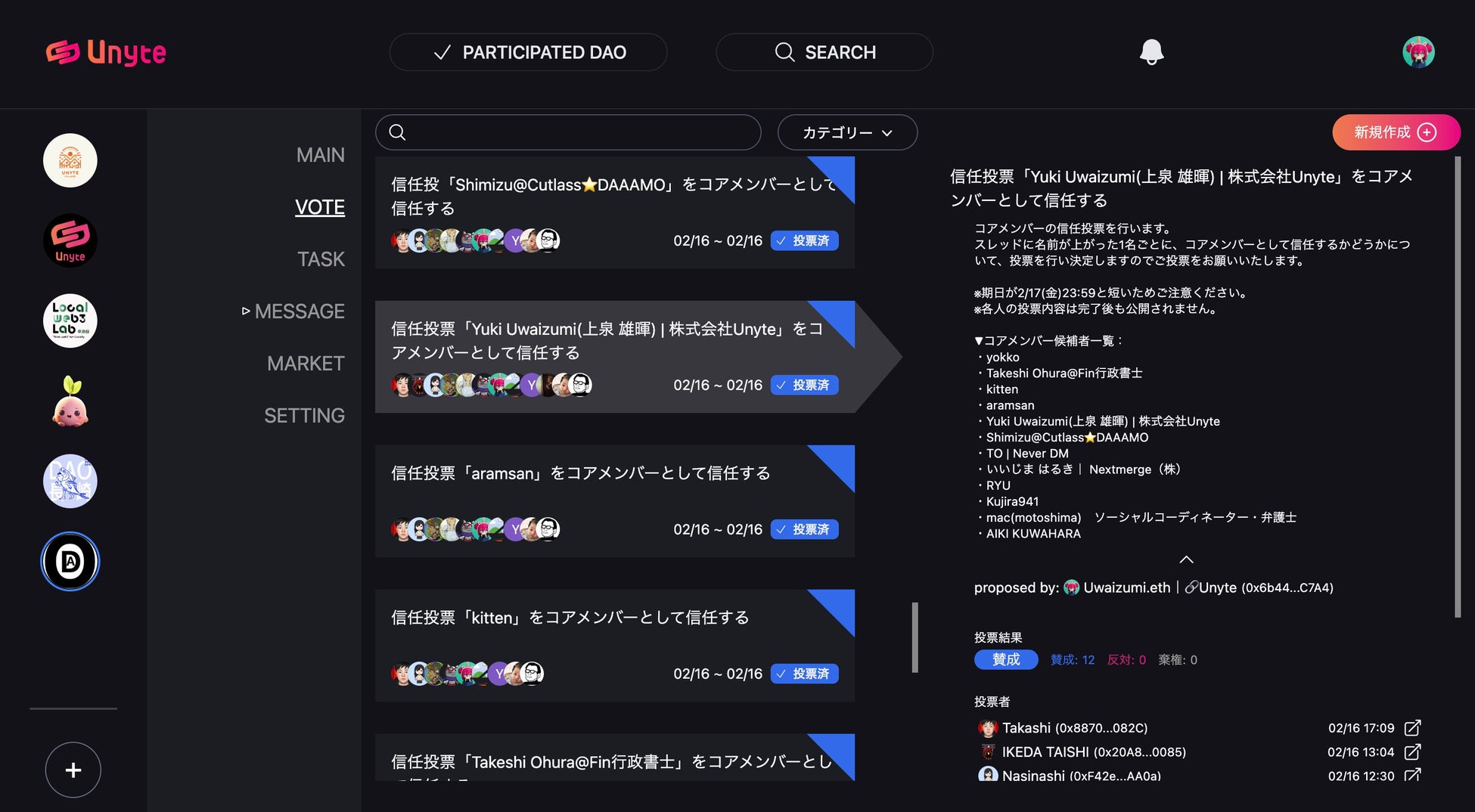 ・各メンバーがいつ/どの提案に対して投票を行ったのか