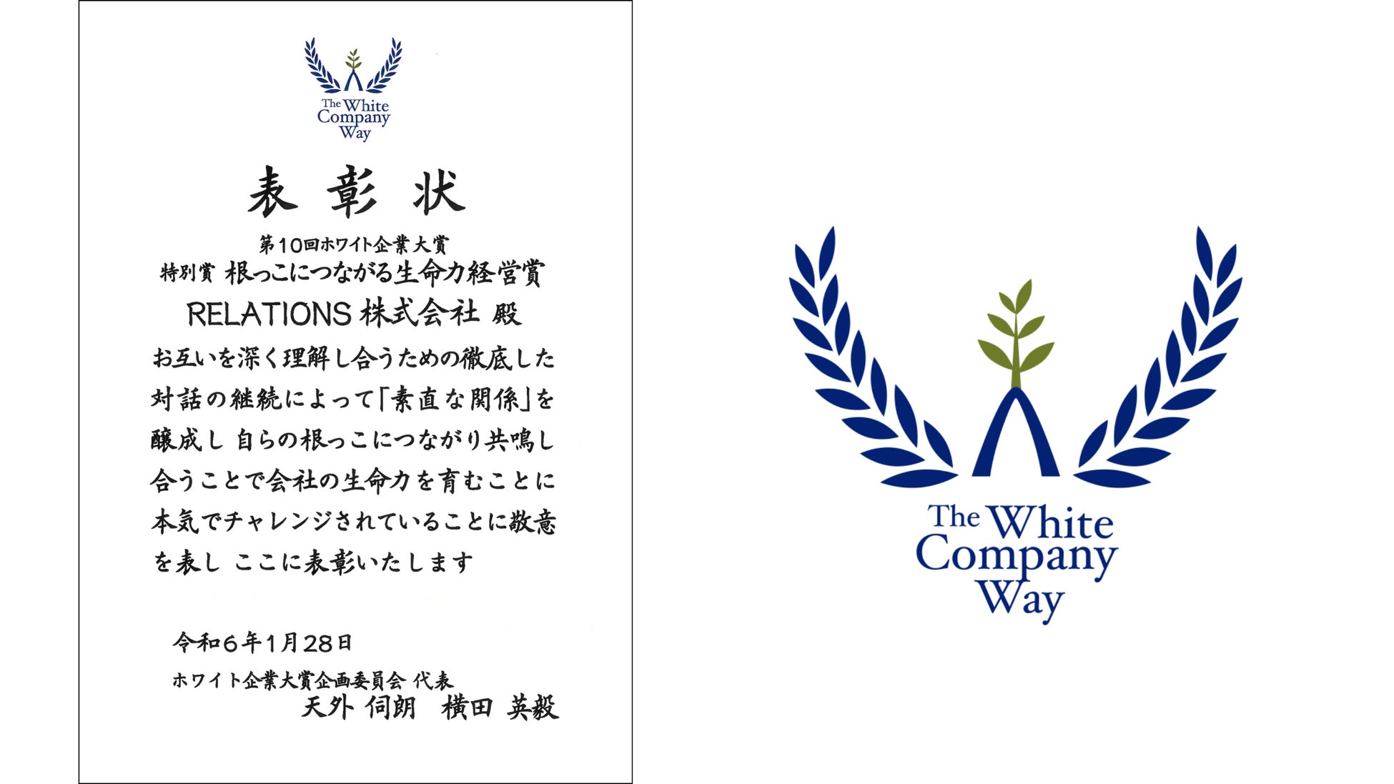 2024年1月28日(日曜)、第10回ホワイト企業大賞にて、RELATIONS株式会社(以下RELATIONS)は、特別賞【根っこにつながる生命力経営賞】を受賞いたしました。