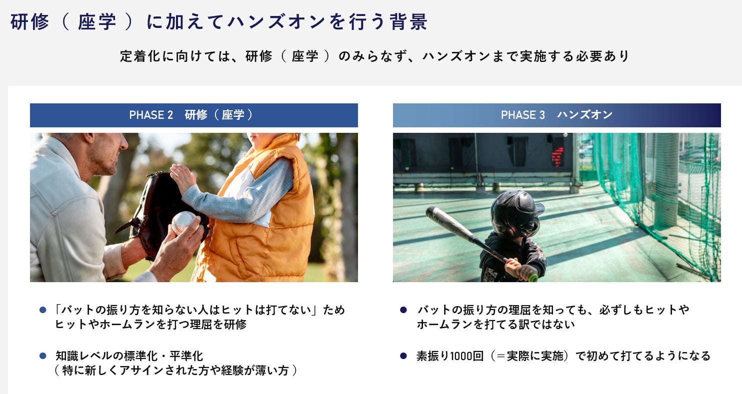 通常の研修プログラムと異なり、学びが組織に定着するまで専門家が伴走支援を行う点が大きな特長です。