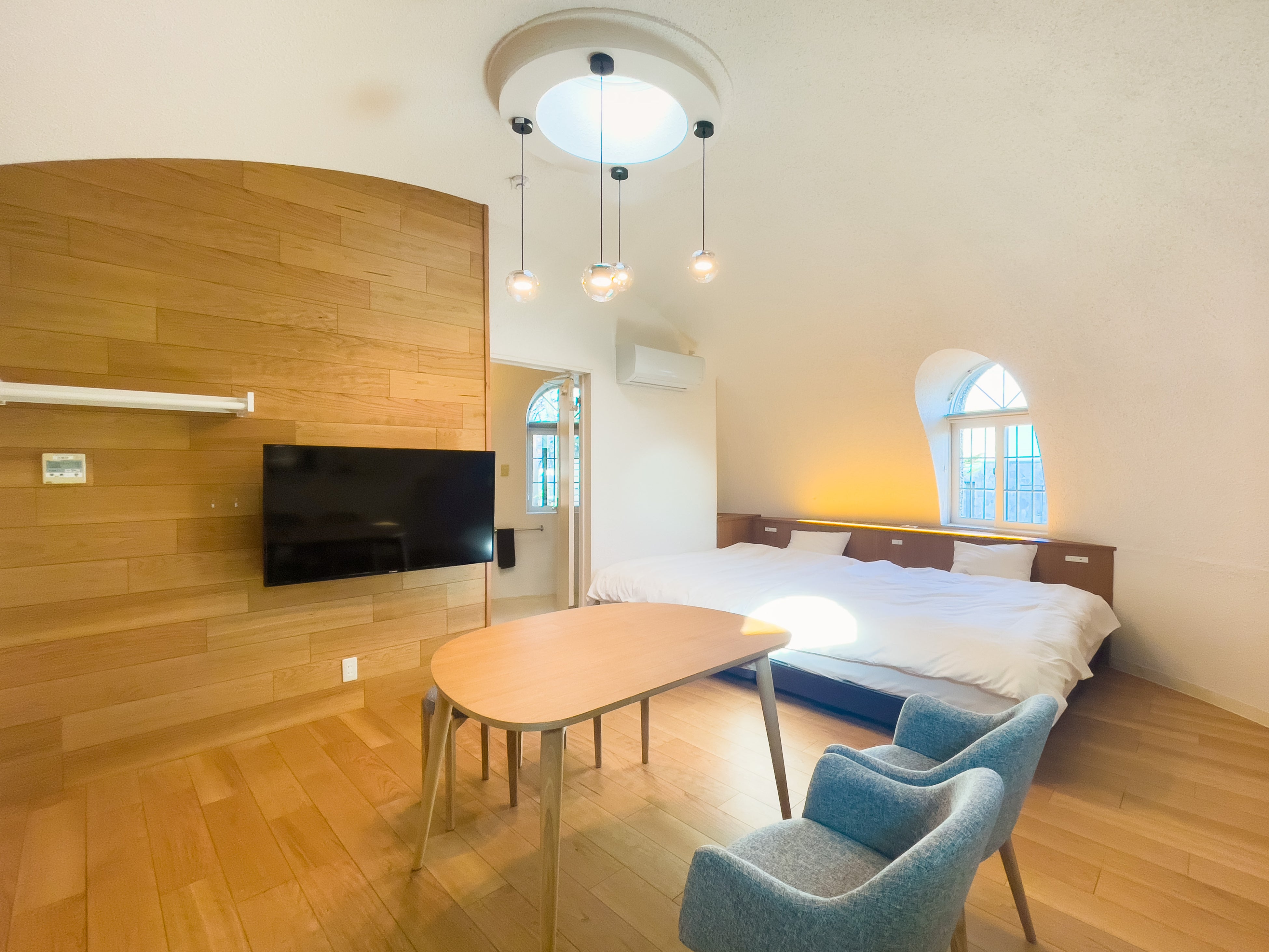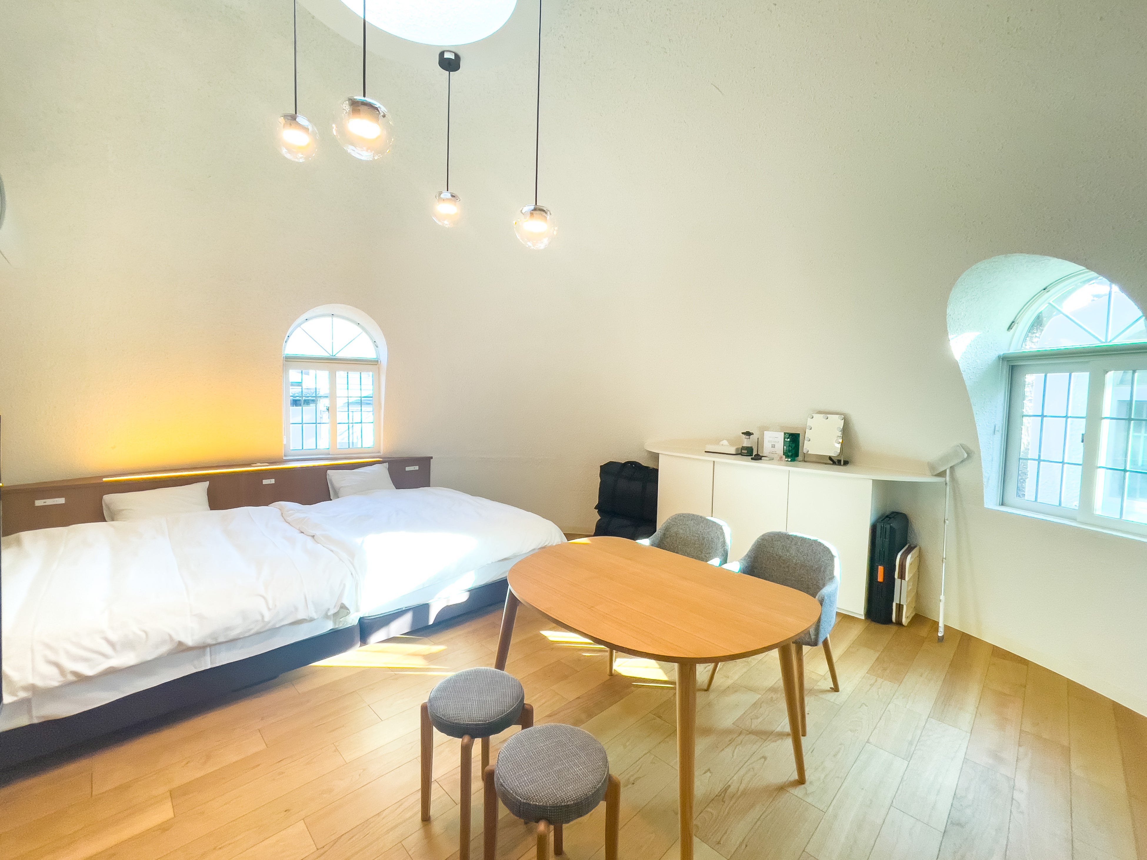 森の中にこつ然と佇む半球体のドームコテージをリフォームして順次リニューアルOPEN。5月末頃までに全棟リニューアル予定!