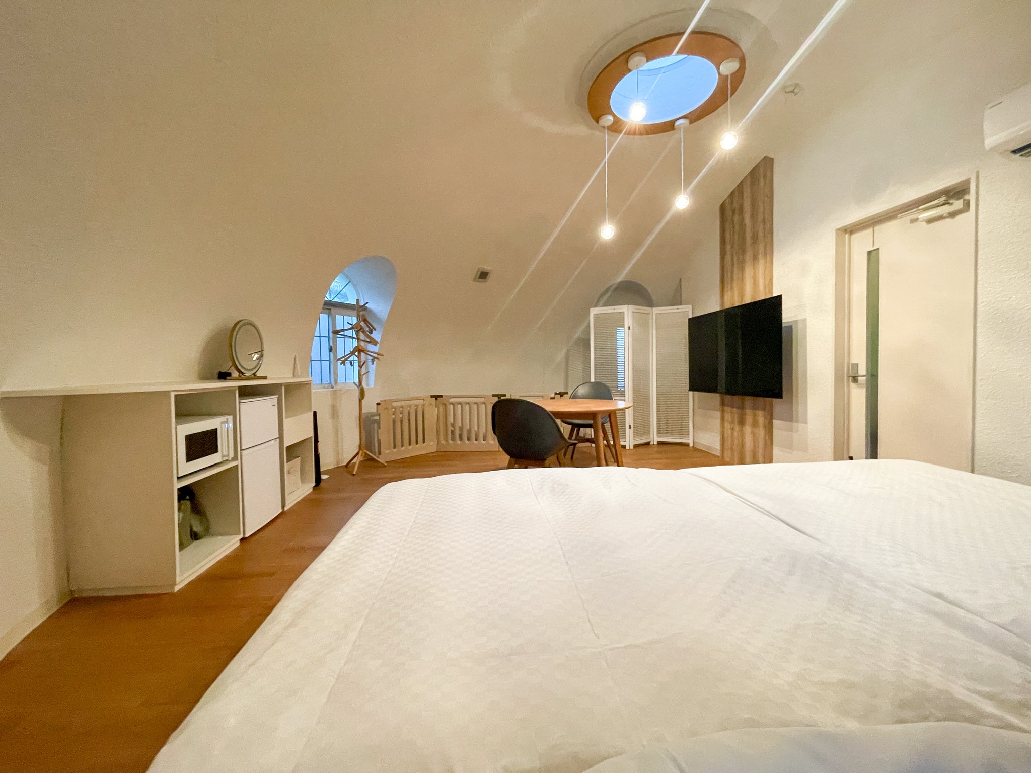 Wi-Fi、テレビ、冷蔵庫、電子レンジ、湯沸かしポット、冷暖房、バス、トイレ、洗面所、天窓 |