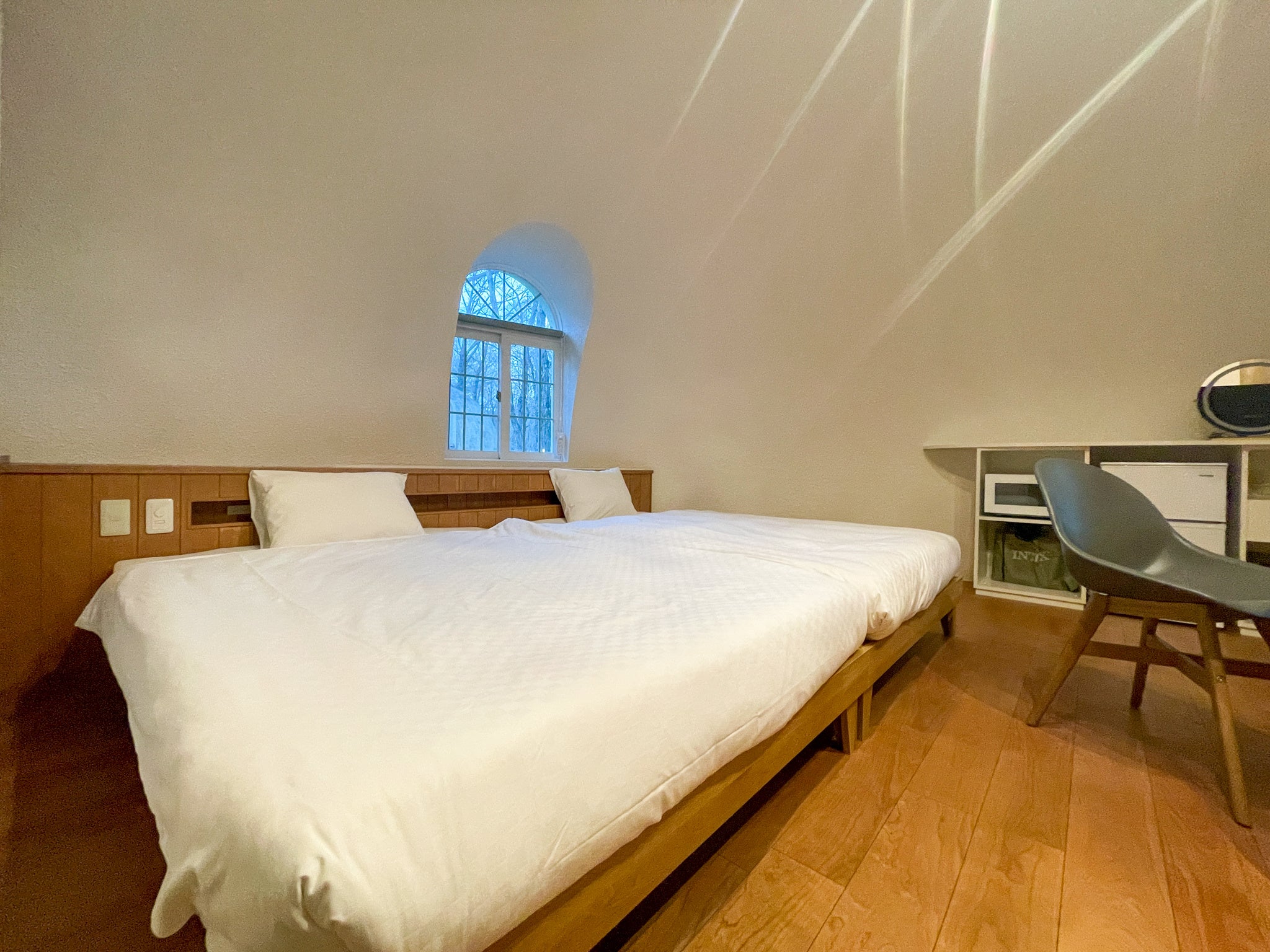 ダブルベッドを二台設置しており、4名様までご利用頂けます。ワンちゃんと小さなお子様連れでのご利用にもお勧めです。