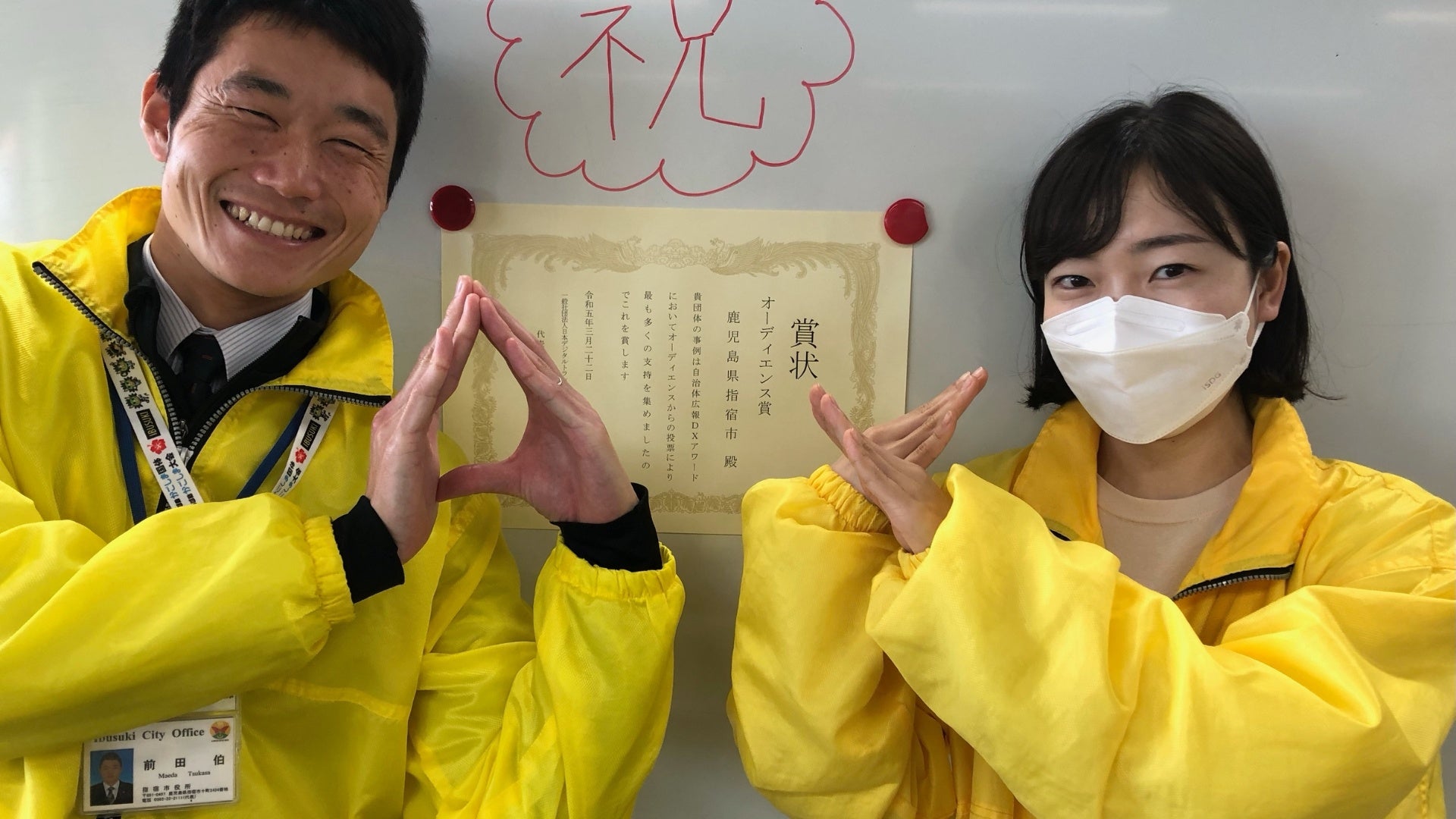 日頃、一人でも多くの方々に、タメになる情報や指宿市の取り組みについて、熱意とユーモアを交えながら、届けようと心掛けているので、最も多くの一般投票を集めたオーディエンス賞を受賞することが出来て素直にうれしく思います。これからも従来の『広報』の枠組みにとらわれず、広報を受ける側も送る側も楽しく、前向きに様々なことに取り組みたくなるような広報活動を推進してまいります。