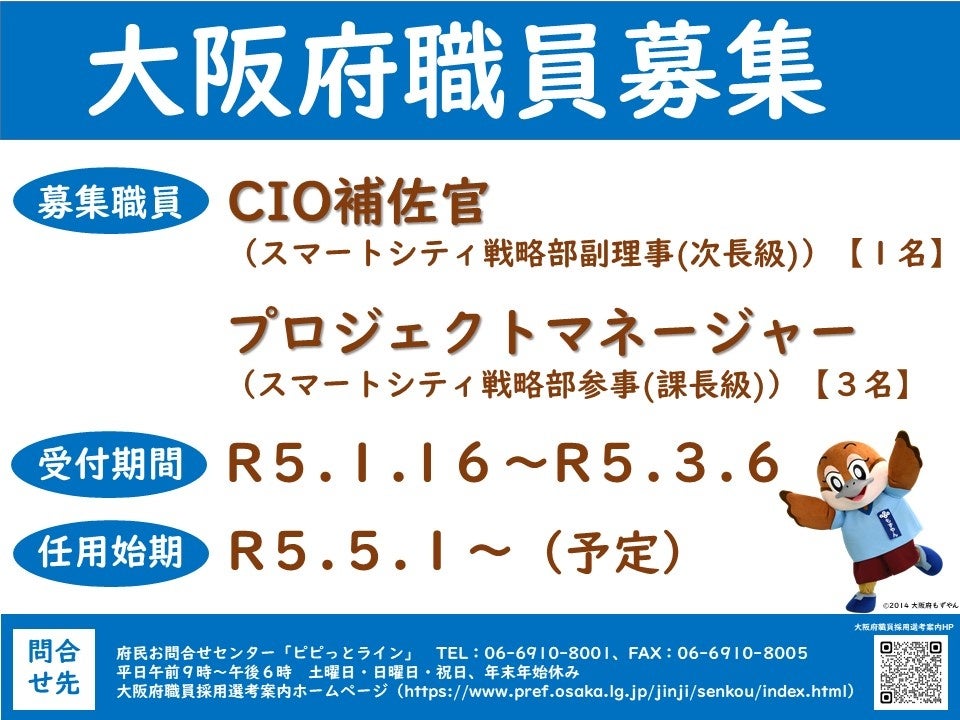 【大阪府】CIO補佐官1名、プロジェクトマネージャー3名を募集します!
