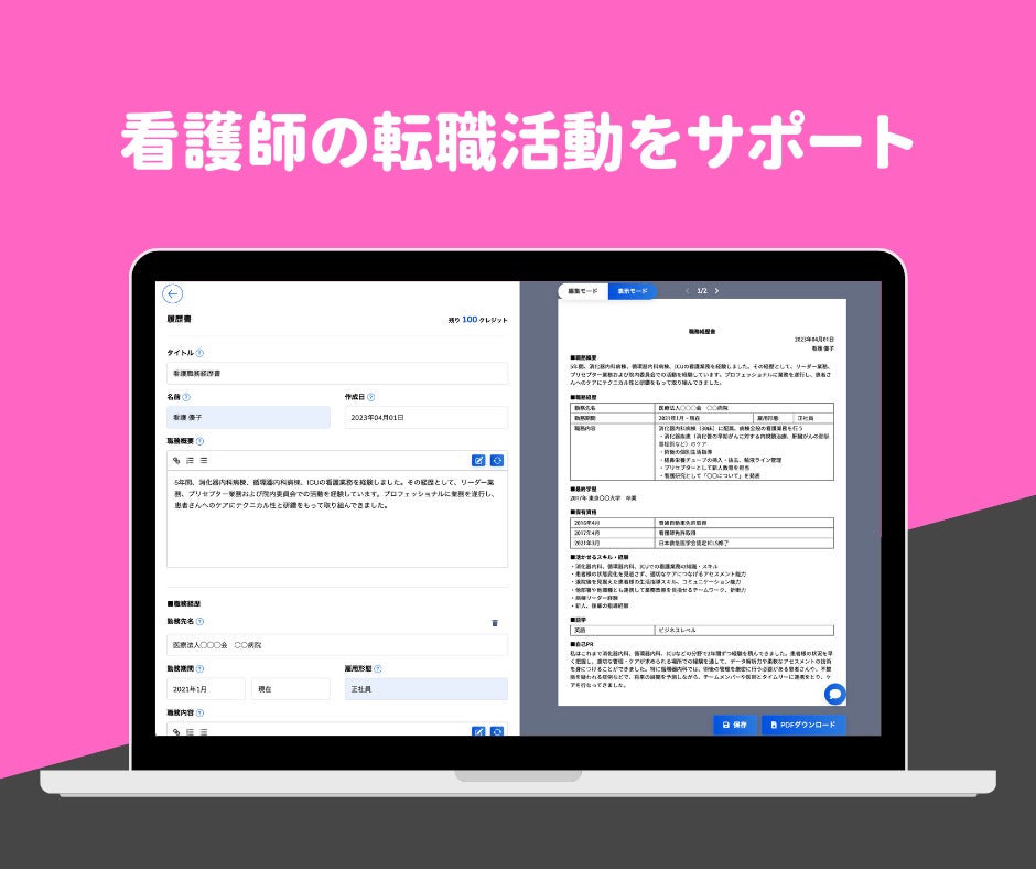 AI技術を活用した職務経歴書作成サービスRESUMY.AI(レジュミーAI)は、看護師向けの文章生成ロジックを大幅に改善し、専門的な文章が生成されるようになったことを発表しました。この改善により、看護師の職務に沿った内容の充実した職務経歴書が簡単に作成できるようになります。