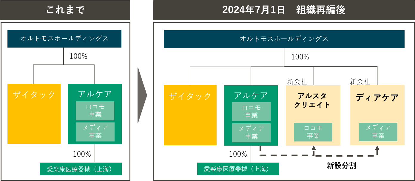 これにより、アルスタクリエイト株式会社、ディアケア株式会社は、オルトモスホールディングス株式会社の完全子会社となります。