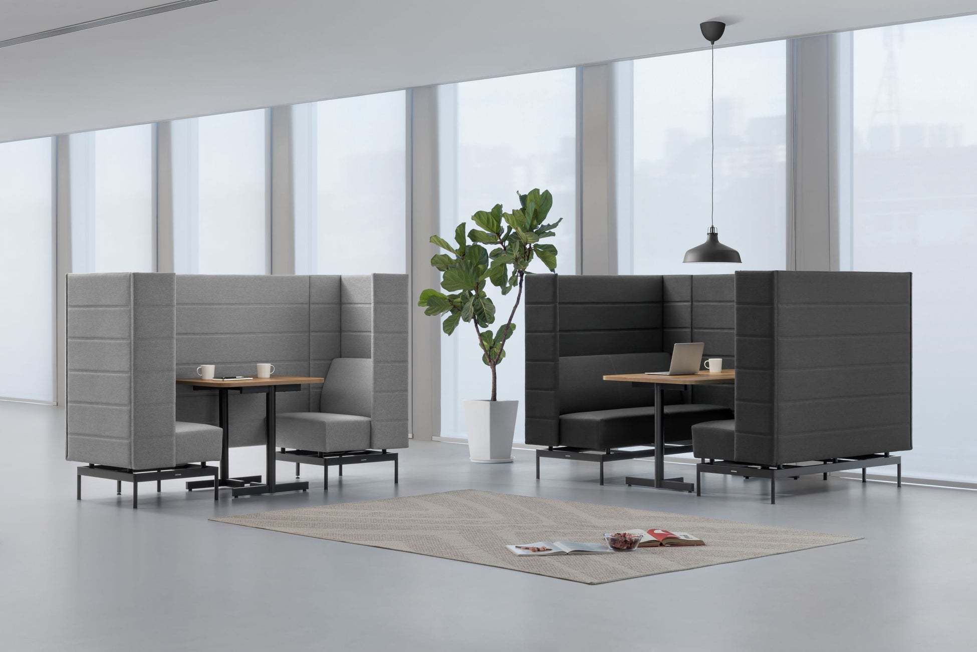高さ1400mmのパネルソファは、専用ブースパネルとの組み合わせにより半個室空間を実現し、集中作業にも最適です。