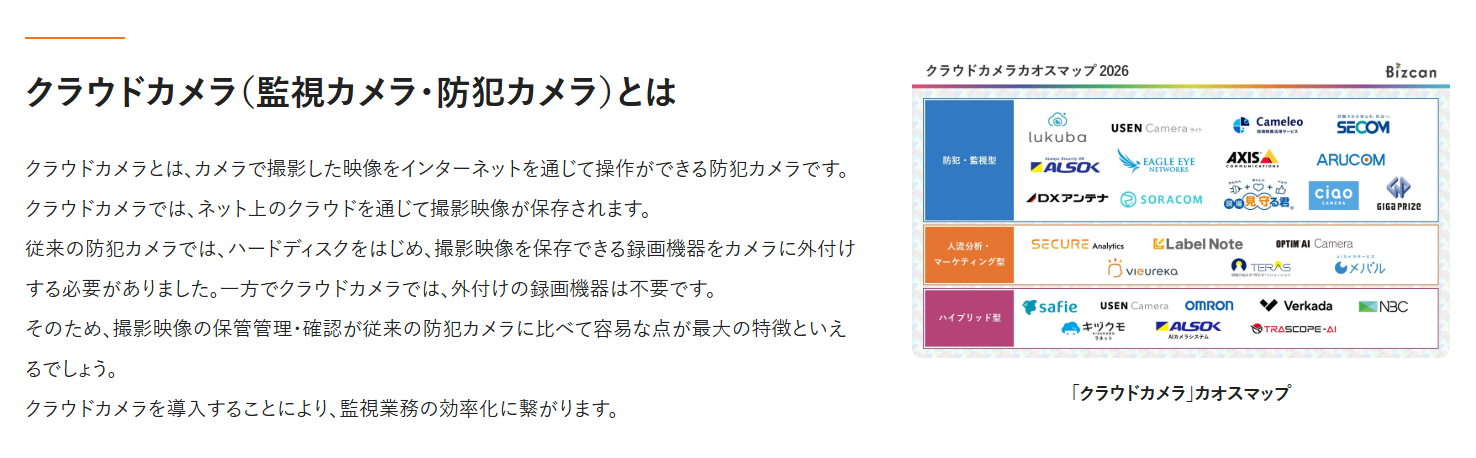 事業用クラウドカメラ市場の全体像がひと目で分かる「クラウドカメラ カオスマップ 2026」をBizcanが公開