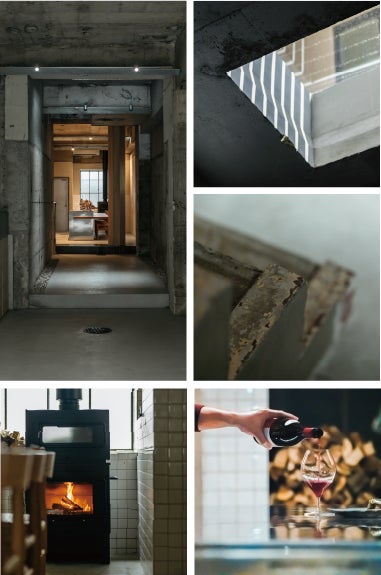 築50年のビルの1階を改修して創られました。設計は、建築家の畑友洋氏が担当。塗装会社の倉庫・社員寮だったこの建物は、昔ながらのユニークな仕様が数多く残っていました。その独自性を活かしつつ、より洗練された空間へと昇華。俯瞰すると縦長の形になっており、手前にはギャラリー、その奥へと進むとワインバーがあります。