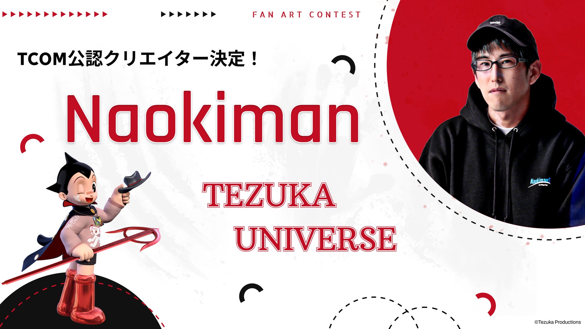 ACGWORLDS株式会社(本社:東京都文京区、代表取締役 青木 一世、以下「ACGWORLDS」)と株式会社手塚プロダクションが共同運営するWeb3プロジェクト 「TCOM(Tezuka Characters On March)」は、開催中の公式二次創作イベント「手塚ユニバース」において、登録者累計367万人を誇る都市伝説系人気YouTuber・Naokiman を“公認クリエイター”として迎えました。Naokiman氏は本イベントのために創作作品を公開し、SNSを通じてさらなる盛り上がりを図ります。