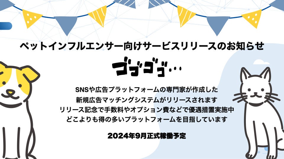 8月の公式リリース後は、登録インフルエンサー数の拡大と、利用企業の開拓を積極的に進めてまいります。ペットの魅力を通じて、多くのフォロワーに素晴らしい商品やサービスを広める機会を創出し、ペット関連市場の活性化に貢献してまいります。