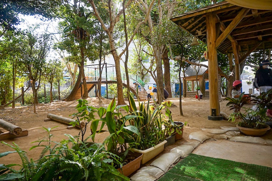 よしたけ保育園では、周囲の人(保護者、保育者、子ども達、地域の人たち等)や豊かな緑に囲まれた園庭で⼦どもたちがのびのびと楽しく過ごす場所を提供しています。また、園庭では小さな虫や草花と触れ合う機会も多くあるため、⾃然とのつながりを深め、季節の移り変わりを体験することができる保育園として、⼦どもたちの成⻑を⽀えています。