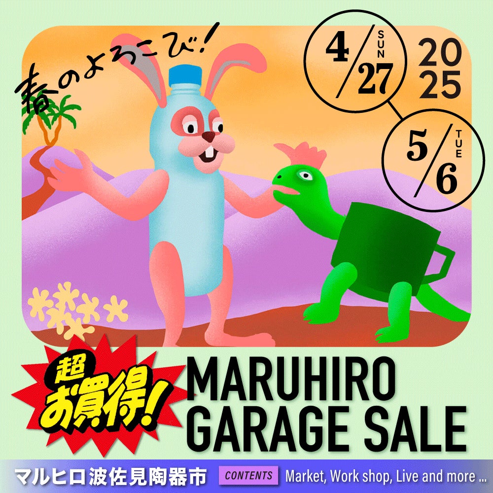 波佐見焼メーカーの有限会社マルヒロ(本社:長崎県東彼杵郡波佐見町、代表取締役社長:馬場匡平)は、2025マルヒロガレージセールを2025年4月27日(日)~5月6日(火)までマルヒロが運営する3施設、私設公園「ヒロッパ」・築86年の日本家屋を改装した「オウチ」・本社「コウバ」にて開催いたします。マルヒロがディレクションした焼き物・カルチャー・フードを楽しめる年に一度の陶器市&マーケットイベントです。アウトレット品の焼き物を30~70%OFFで、さらに5/3~6限定でA品の焼き物を20%OFFでお得にお買い求めいただけるほか、マルヒロスタッフ選りすぐりの多ジャンルの飲食店やショップの出店、ワークショップ、音楽ライブなど様々なコンテンツが目白押しです!