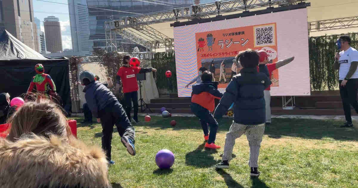 2023年1月29日(日)に大阪市のうめきた外庭SQUAREで開催されたキッチンカーイベントで、「ラジオ体操豆まき」を行いました。節分が近かったことから、ラジオ体操と豆まきを組み合わせました。ラジオ体操をしている鬼たちに、豆に見たてたボールを投げてもらい、鬼退治をしてもらいました。