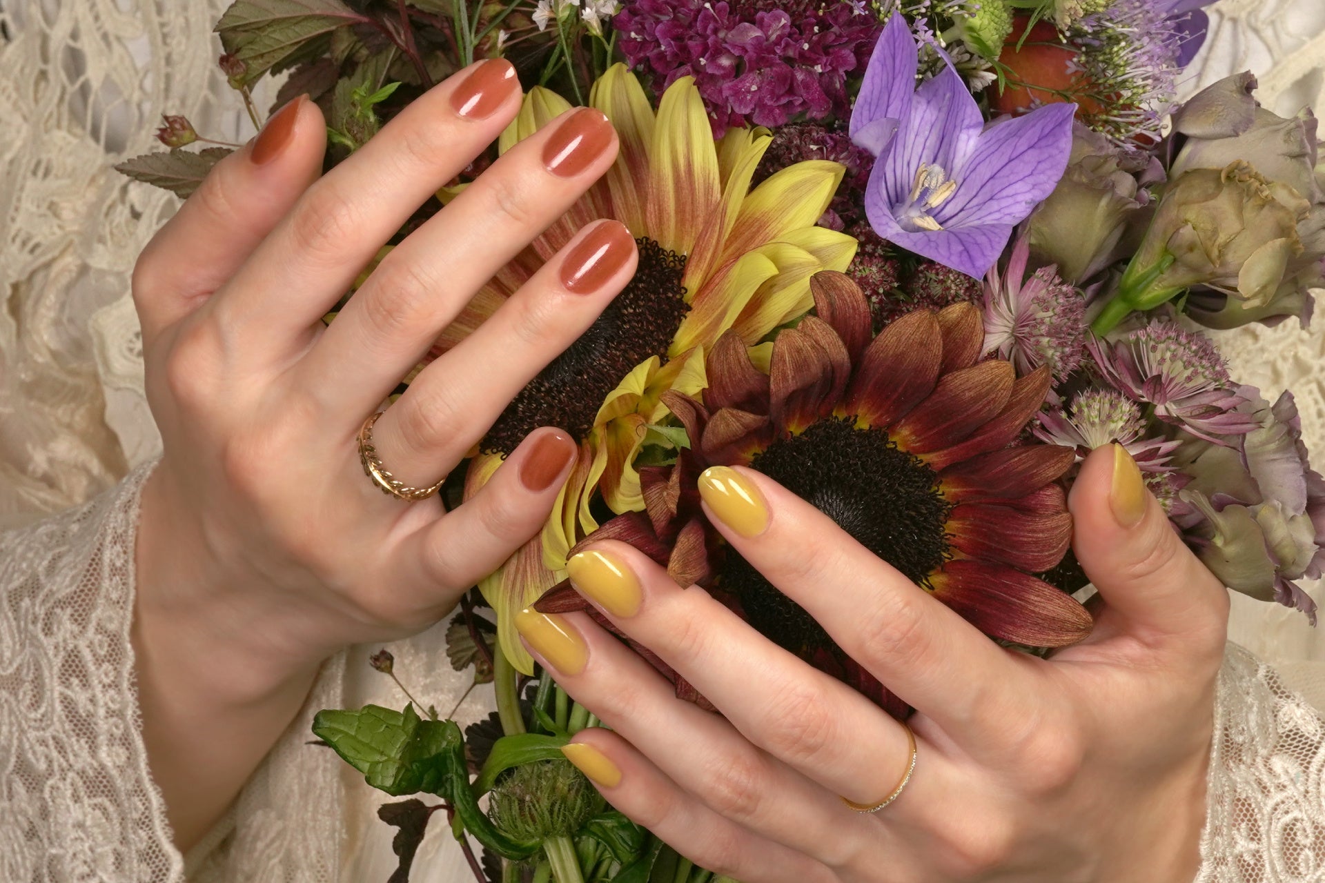四季の中に咲く様々な花や季節の⾵景から感じる⾊の中から、肌なじみの良い⾊やその季節ならではの⾊をチョイスしたネイルカラー。カラー名は、花や情景の名前とそれらをイメージした⼤和⾔葉をつけています。