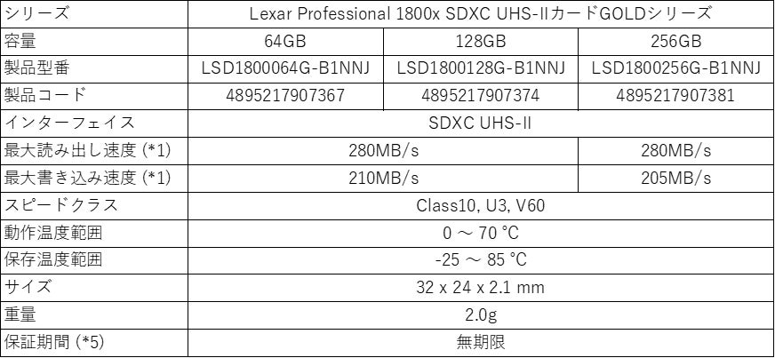 Lexar Professional 1800x SDXC UHS-IIカードGOLDシリーズ新製品(64GB、128GB、256GB)について