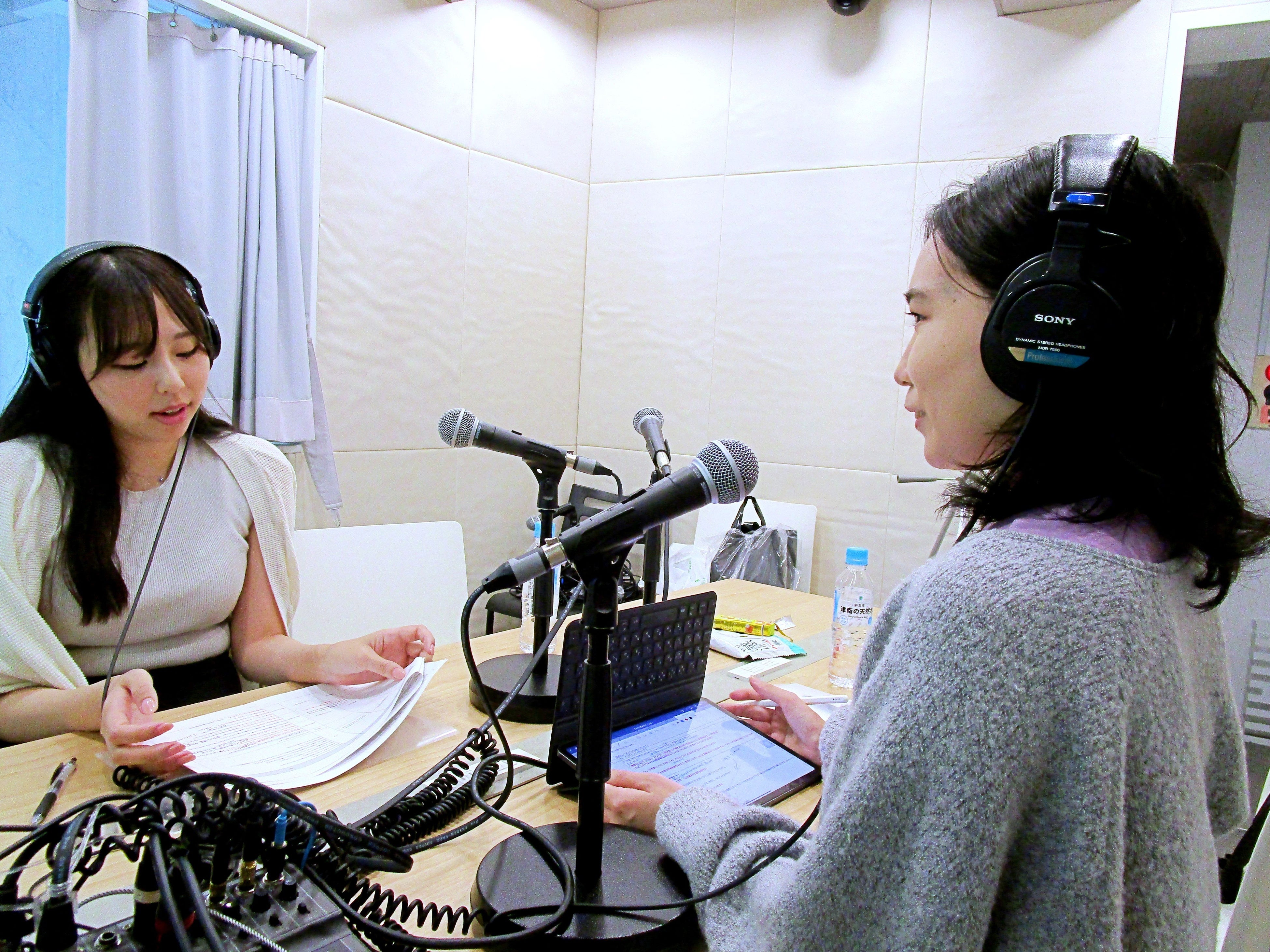 (収録の様子 左 瑞希さん 右パーソナリティ山下)