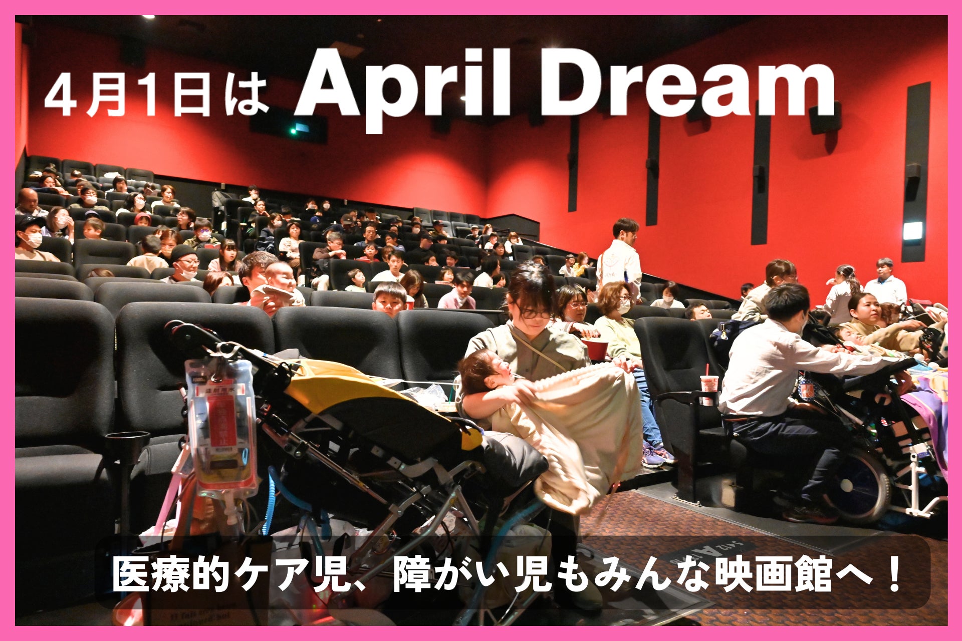 こうした医療的ケアを必要とする子どもたちや、障がいをもつ子どもたちとそのご家族は、身体的・心理的負担の両面から、お出かけを諦めてしまいがち。とくに、席にじっと座っていることができない、急に声を出してしまう、医療機器のアラーム音・痰の吸引音が鳴るなどの理由から周囲に迷惑がかかることを気にしてしまい、静かな環境である映画館には高いハードルを感じてしまうと聞きます。