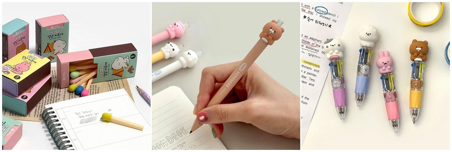 「Lazy Stars」や「Soondeok Crew」のキャラクターを中心としたユニークな文房具が大人気。