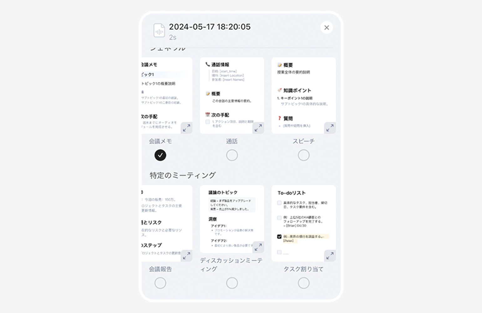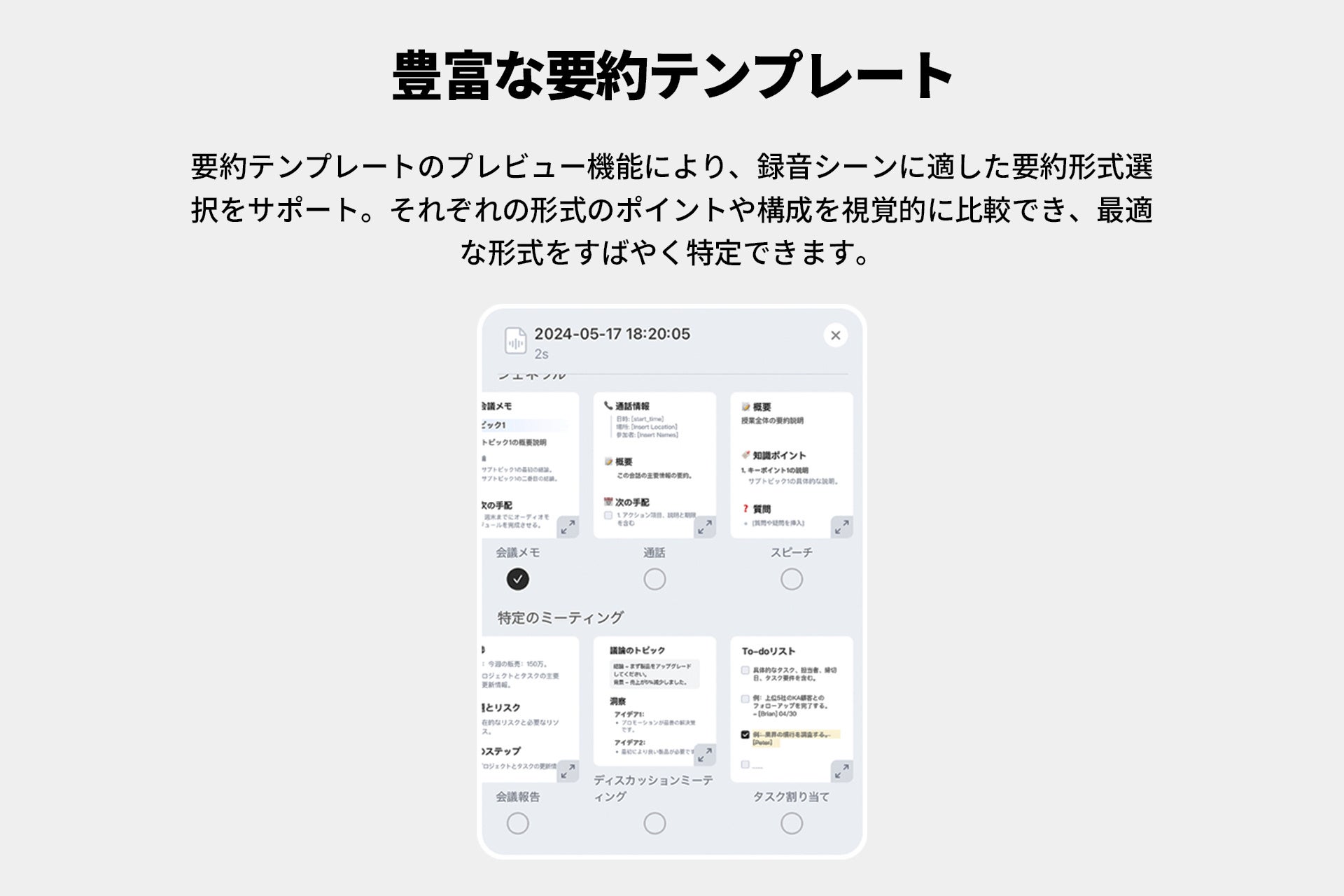 豊富な9形式もの要約テンプレートに、プレビュー機能が追加されました。