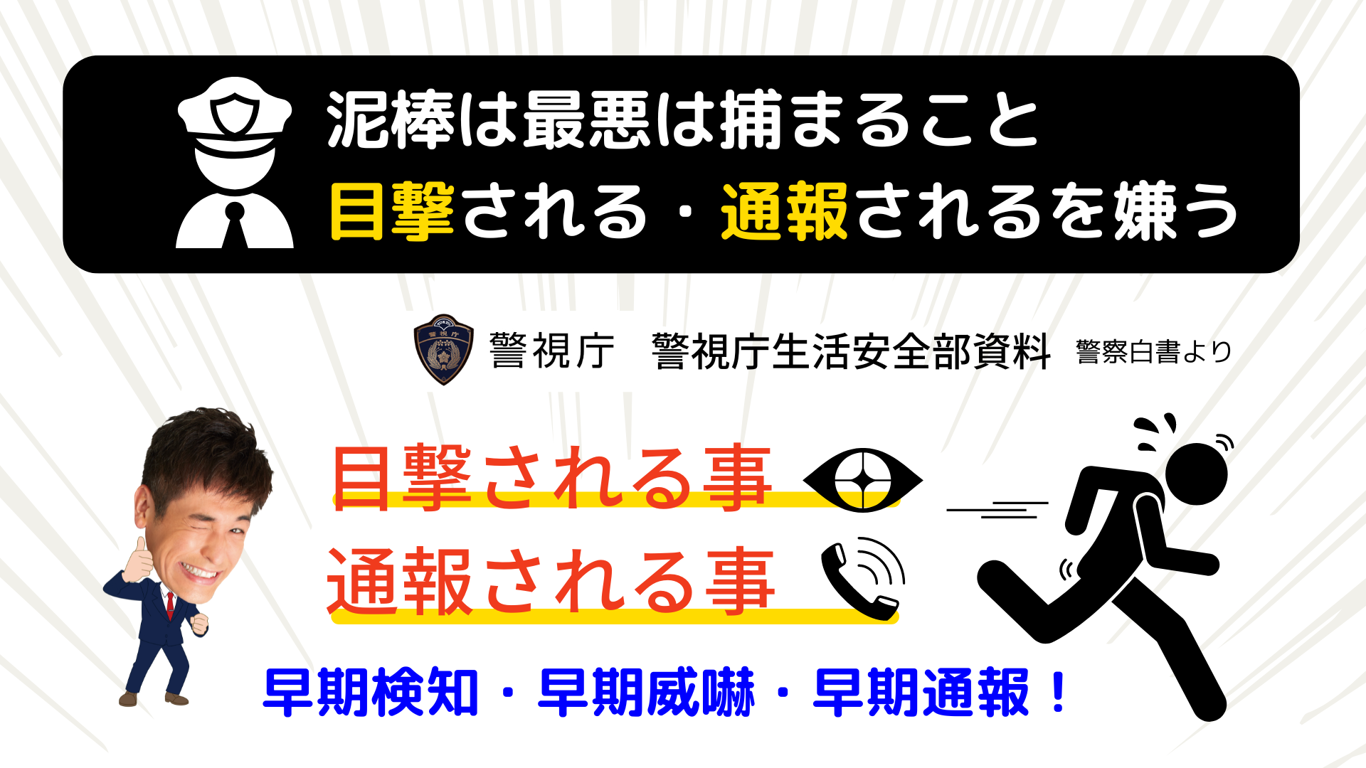 その様な背景から「警備会社」や「防犯カメラ」の対策が促されていますが、現場では「ことが起きた後の対処」といった『事後的な対策』では防ぐのには限界があります。