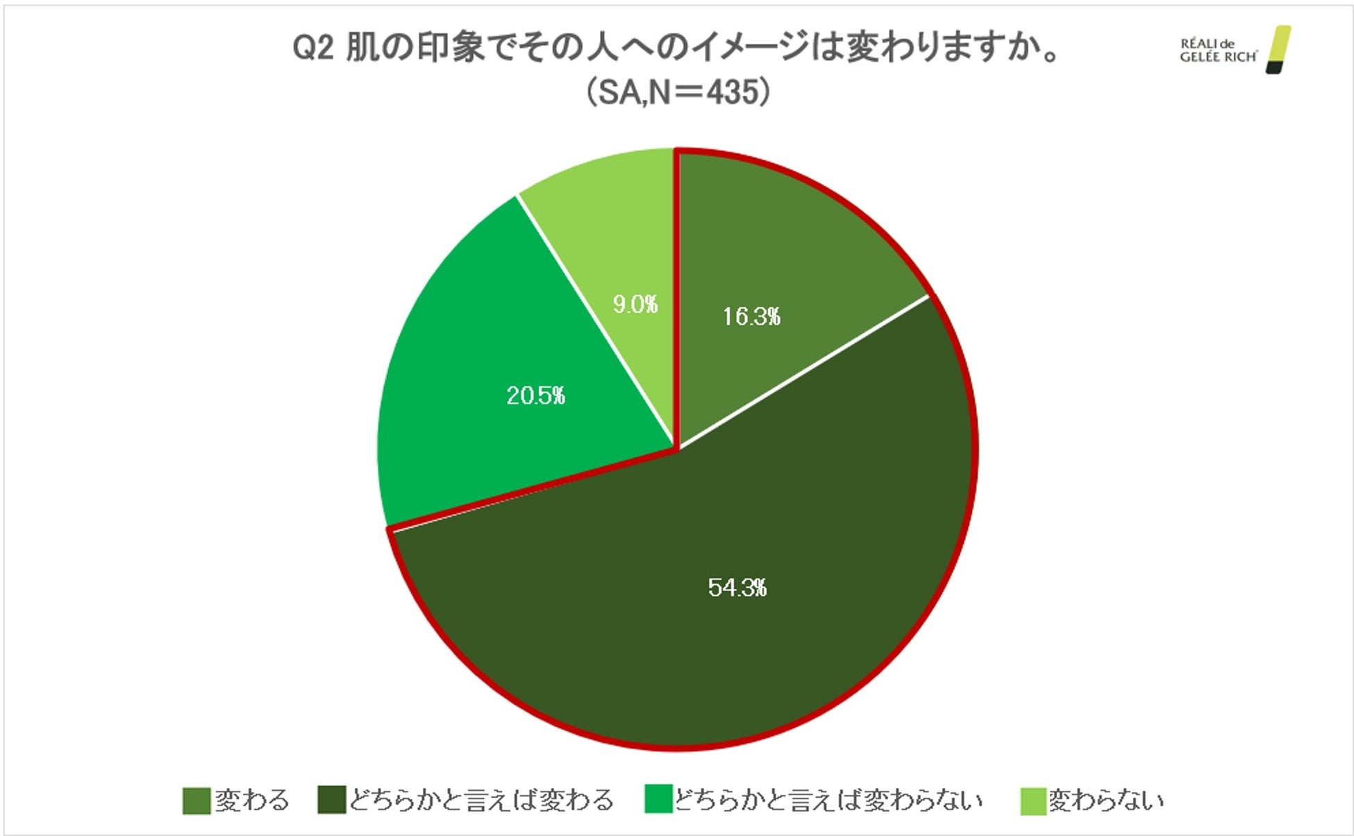 「肌の印象でその人へのイメージは変わりますか。」と質問したところ、「変わる」「どちらかと言えば変わる」と回答した男性は、約7割(70.6%)という結果になりました。自身の肌の状態は、人に与える印象に影響を及ぼすことが分かりました。(N=435)
