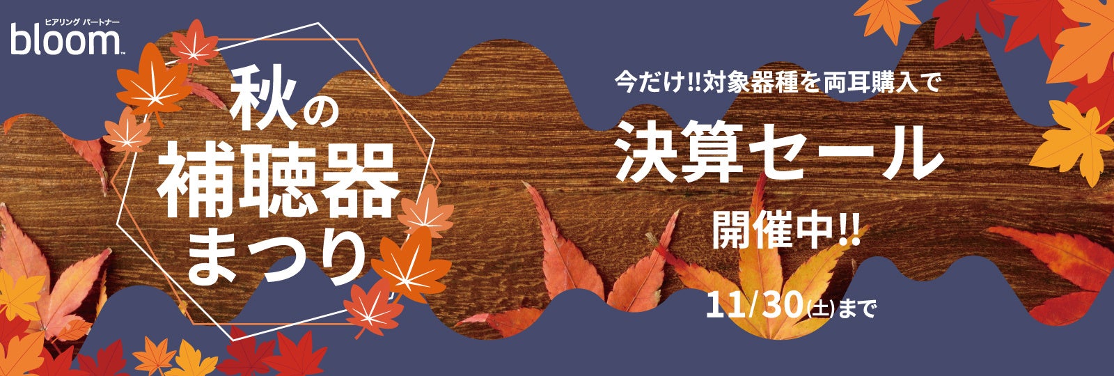 補聴器専門店ブルーム - 全国104店舗で秋の補聴器まつり開催♪ 人気の最新器種を含む補聴器が両耳購入で最大122,400円割引に!