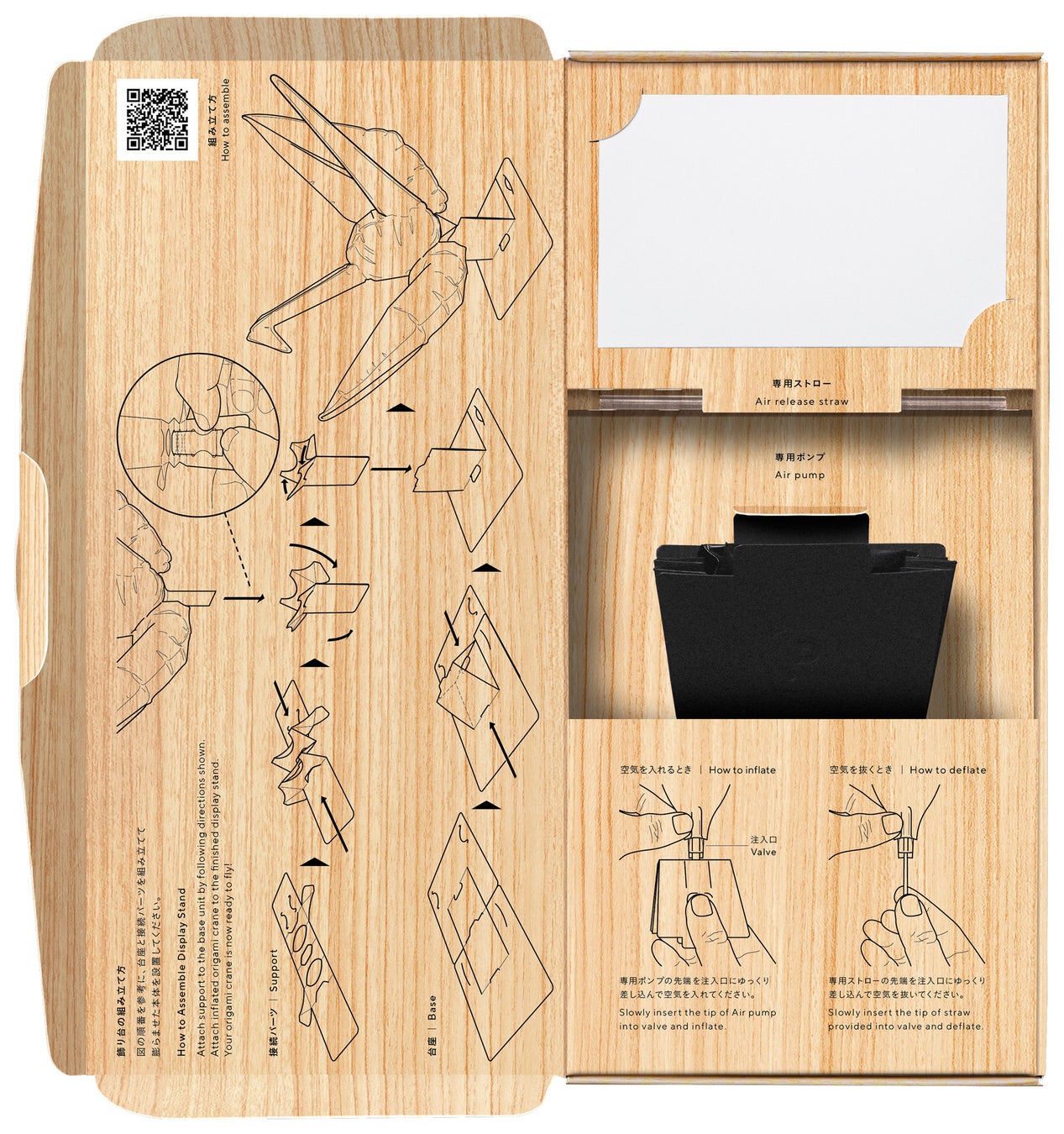 独自に開発した専用ポンプで空気を送り込みます。ポンプを押すたびに少しずつふくらんでいく様子は、想い・願いで満たされていくような楽しさがあります。注入口は逆止弁で空気が漏れにくい構造なので、専用ストローを使って空気を抜きます。