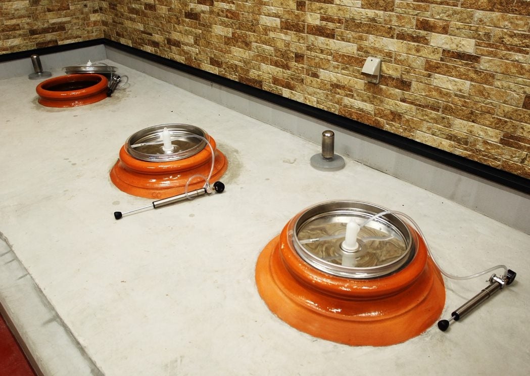 2017年9月末、2年に及ぶ建設期間を経て醸造所が完成しました。施設の特徴は、スペインから直輸入した陶器壺を地中に埋めて醸造するアンフォラ醸造です。大小合わせて17基、最大1000Lもあるアンフォラ醸造施設は国内最大級です。アンフォラを使ったワイン造りは8000年ほど前からあるもので、GRAPE REPUBLICが目指す“Made of 100% Grapes”のワイン造りに適していることから、採用を決めました。アンフォラ醸造をメインにステンレスなどのタンクも併用することで、自然な造りでありながら安定した品質のワイン造りも可能になります。