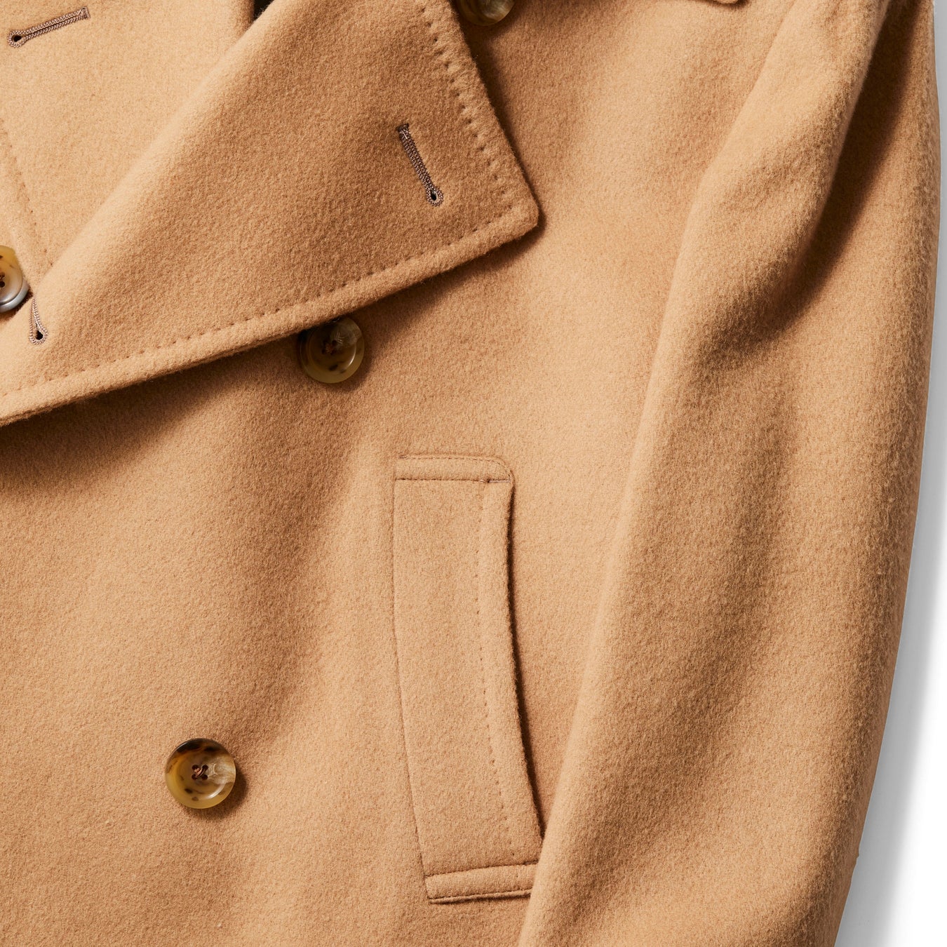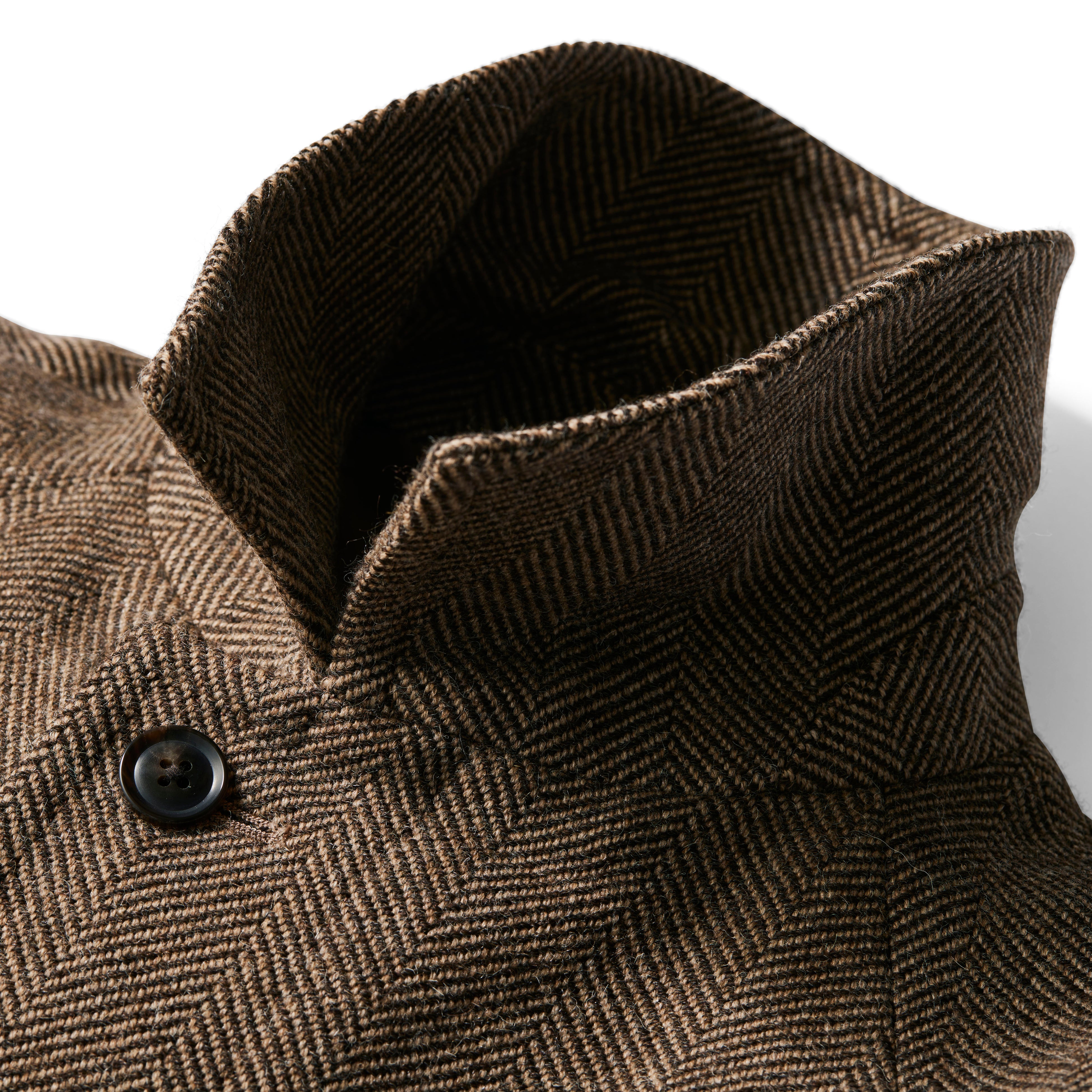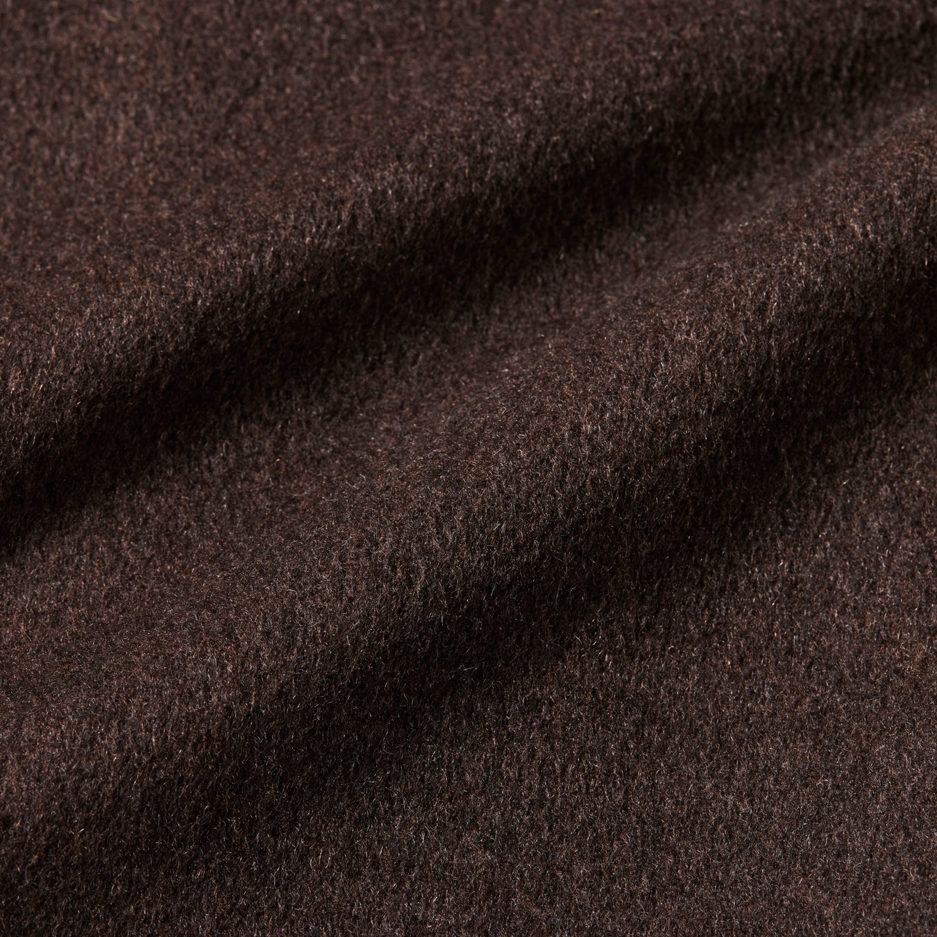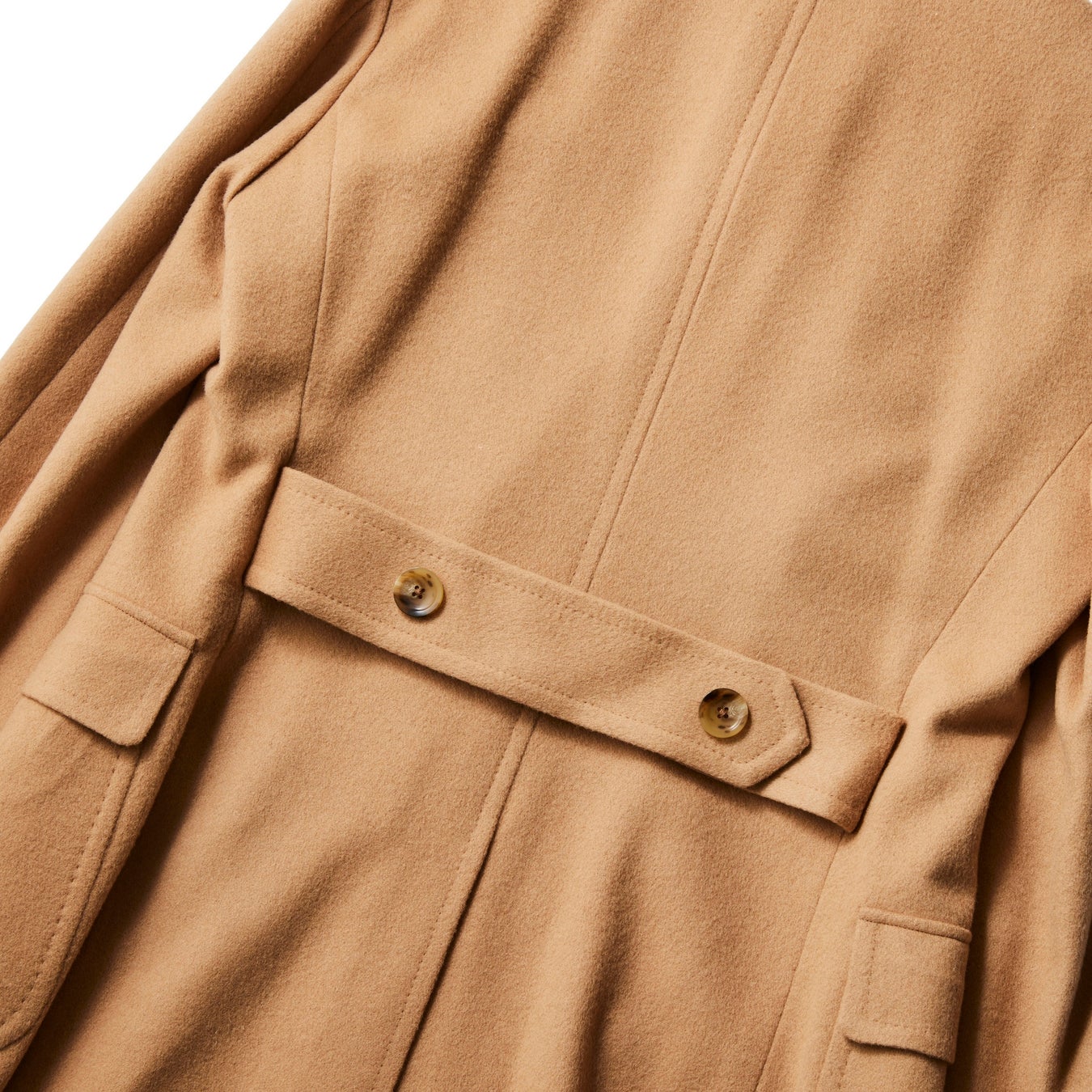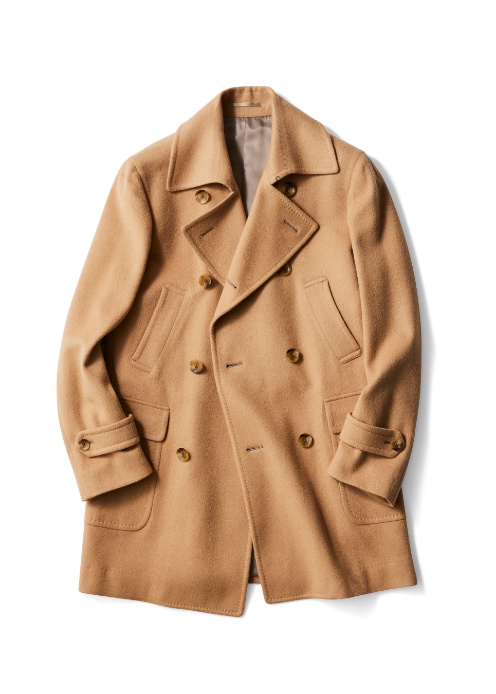 イギリス海軍が、船の甲板で作業する際に着⽤された作業着がルーツにあり、⾵向きによって左前と右前をフロントボタンの留め⽅で変えられるように作られています。⿇布テーラーはクラシックな釦仕様、着丈を⻑く取り、シャープなシェイプラインを形成する事により、ドレッシーなピーコートにアレンジしました。