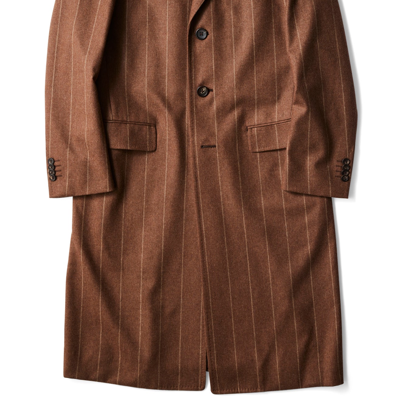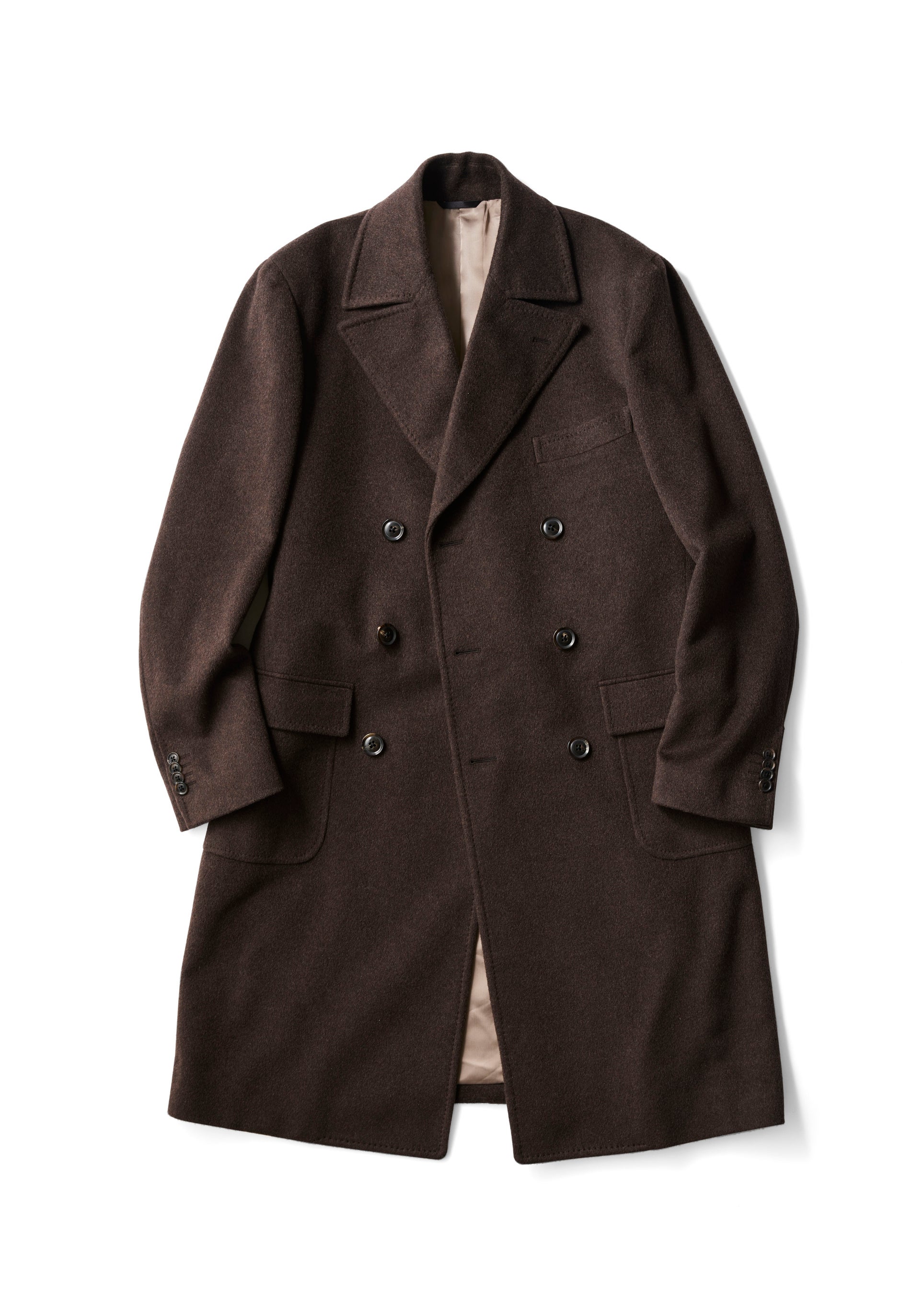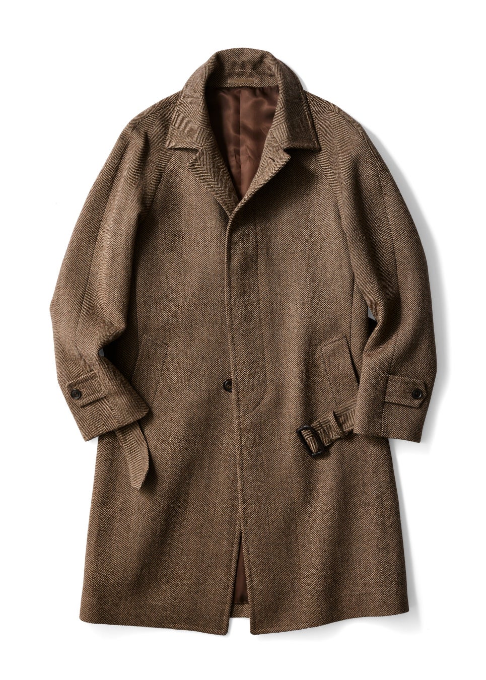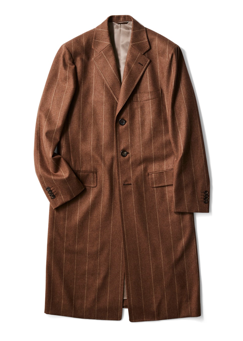 コートの王道は今も昔もウールのチェスターフィールドコート。正装⽤コートで、最も格調⾼いコートといわれています。名前の由来は、チェスターフィールド伯爵が好んで着ていたことからこの名がつけられました。今シーズンは、英国的なストライプやヘリンボーンなど、多彩なパターンドコートに注⽬です。