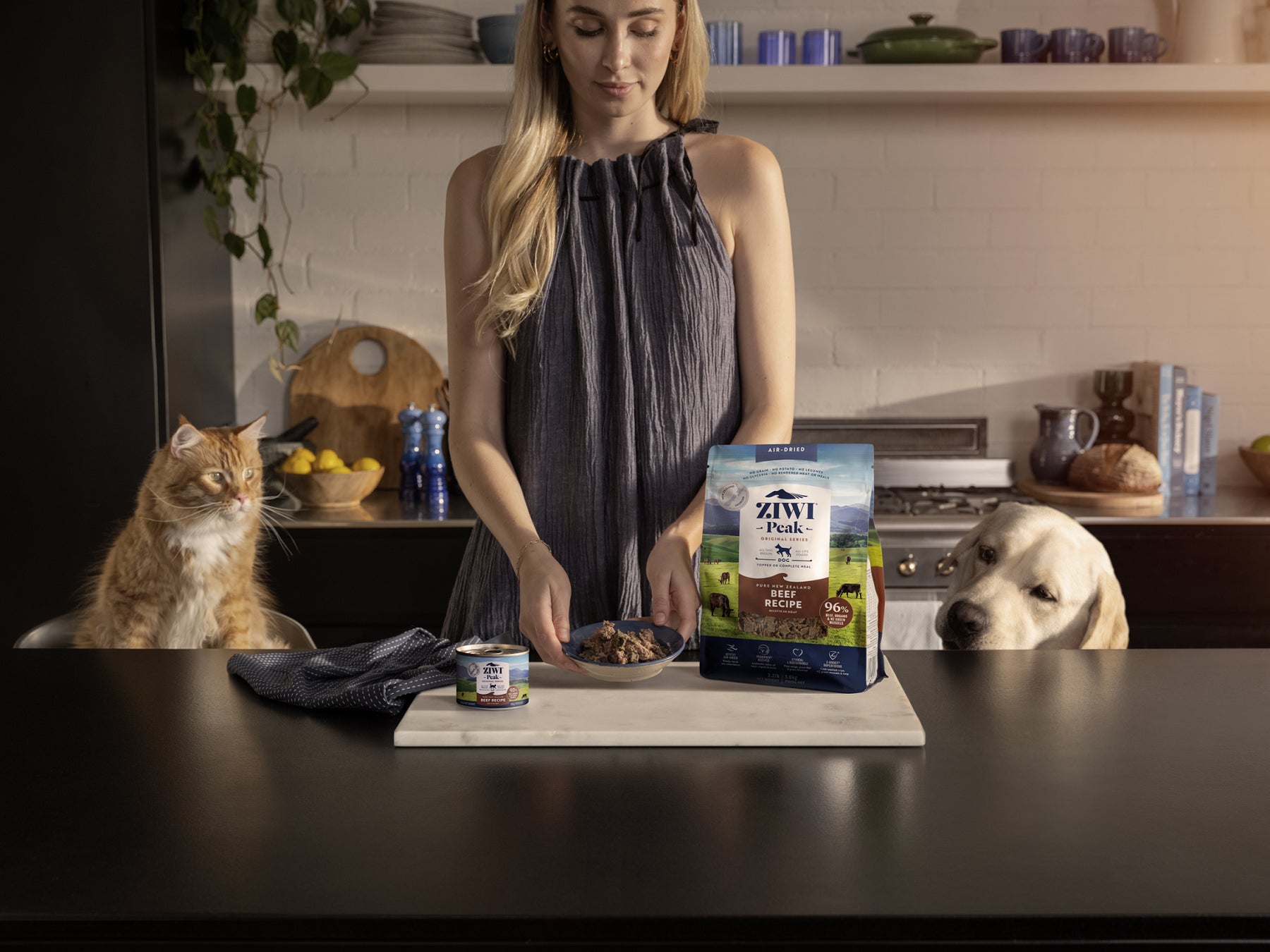ZIWIは一切妥協をすることなく、ペットに最高の栄養をお届けするため、ニュージーランドの自社キッチンで、自然の恵みがたっぷり詰まったニュージーランド産原材料と最新の調理法を用いて、つまり自然の栄養と、最新の技術をかけ合わせて、丁寧にフードを作っています。