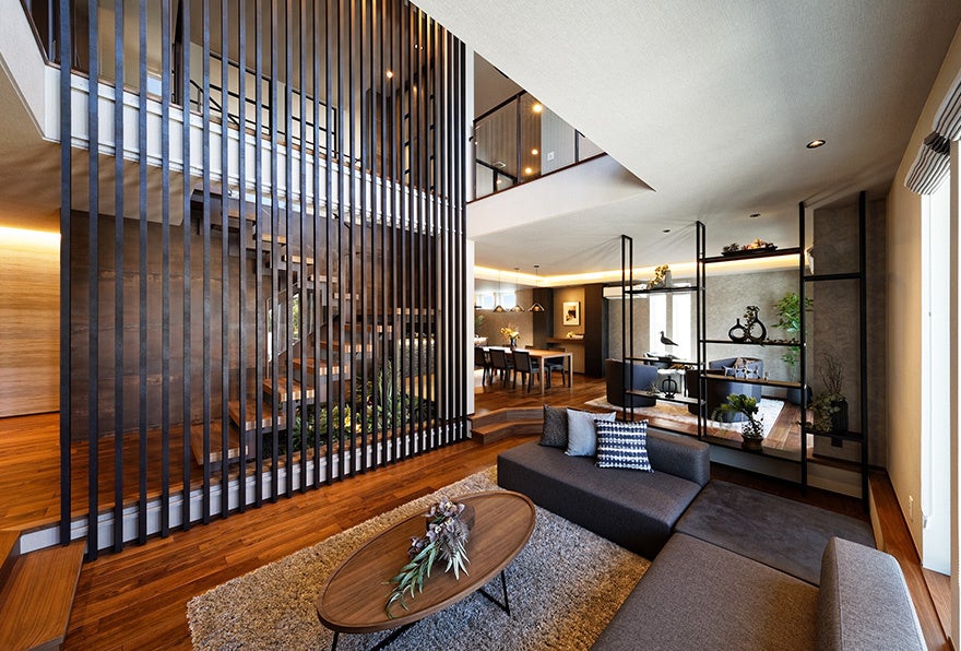 素材感を活かしたコーディネートで和のエッセンスがほのかに香る上質で安らぎを感じるインテリア