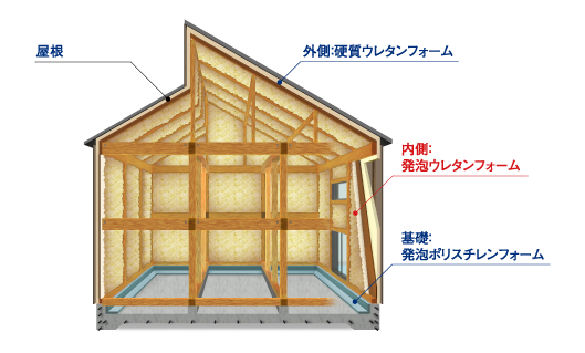 TOPクラスの断熱性能をもつ断熱材で家をまるごと包み、断熱性能・気密性能を追求した家づくりを行っています。