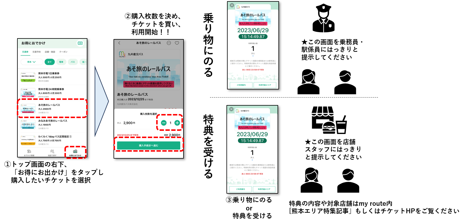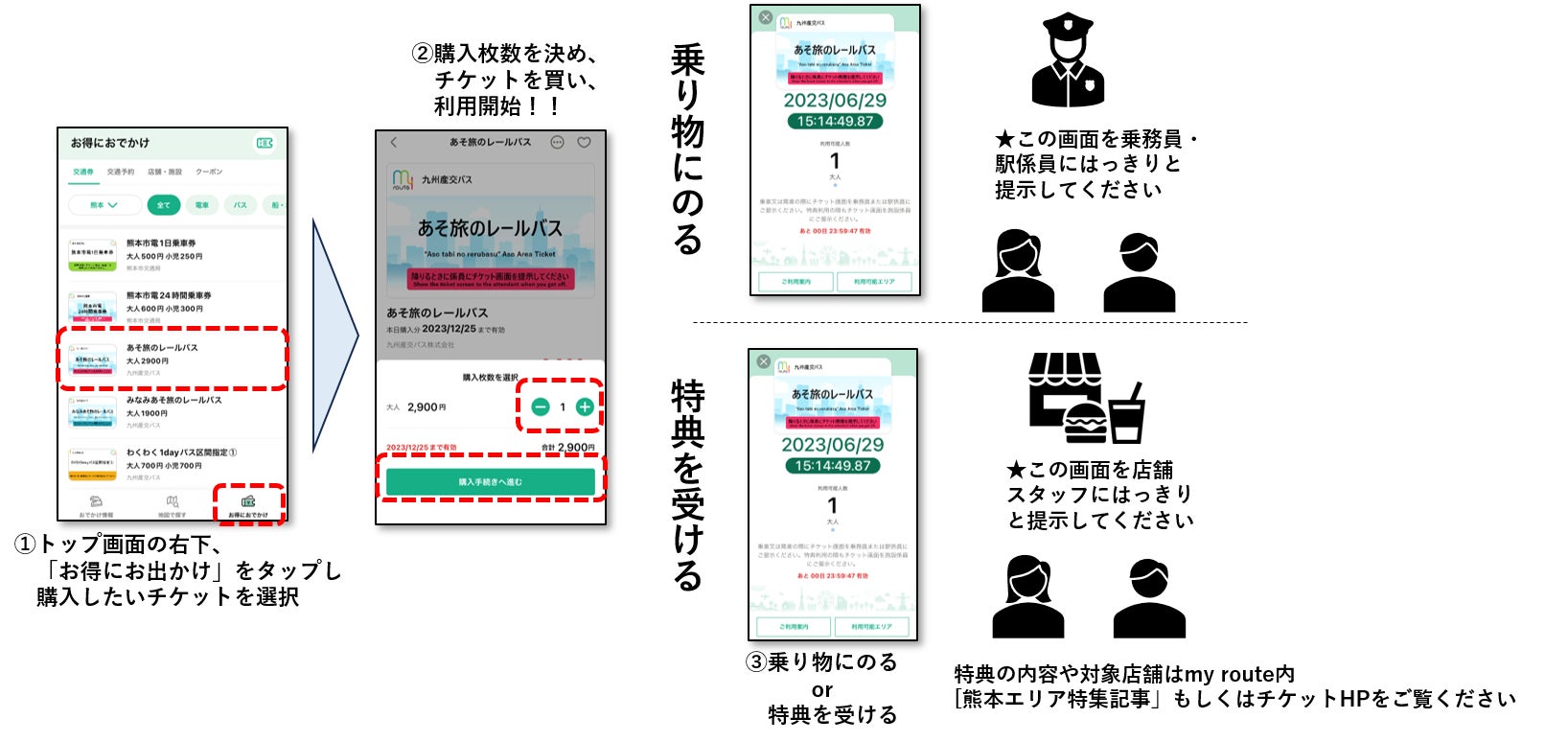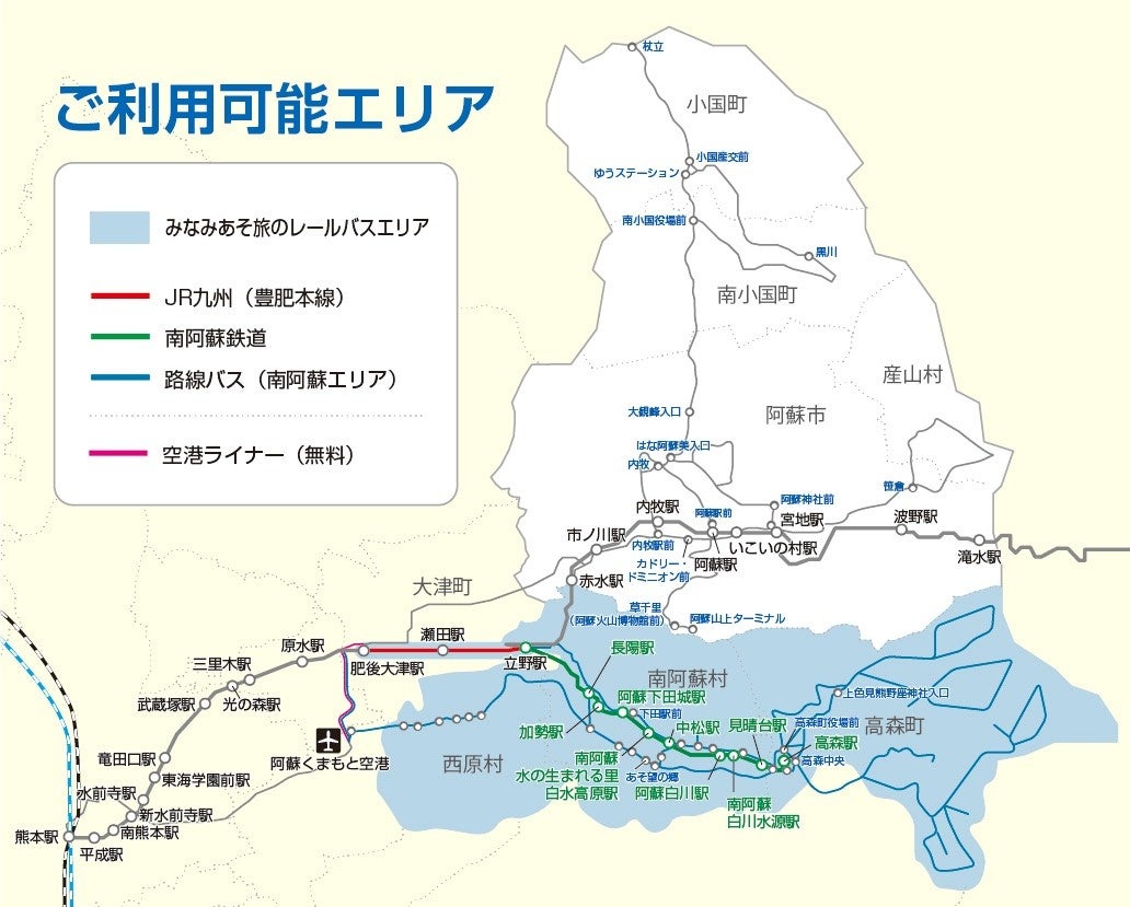・アクセス券では、JR九州や九州産交バスを利用する場合の阿蘇地域⇔熊本市内へのアクセスも含まれています。