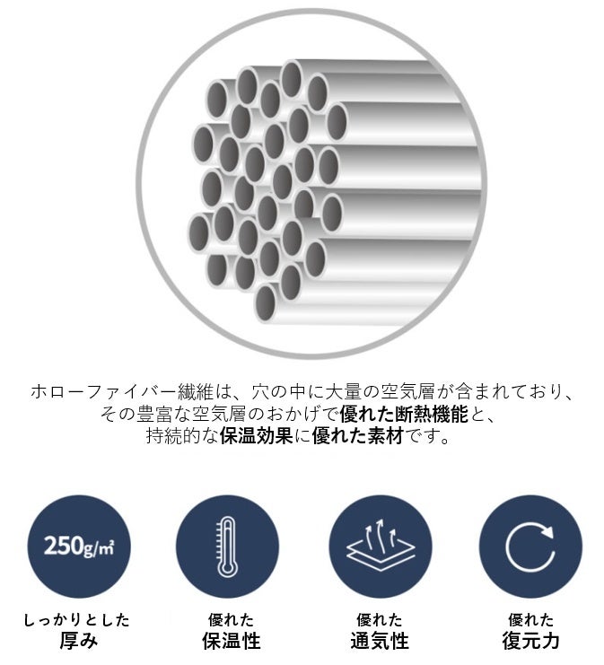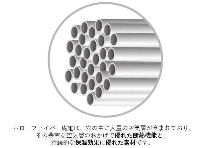 中綿には、ホッキョクグマの毛の原理を利用した「ホローファイバー」を使用しています。