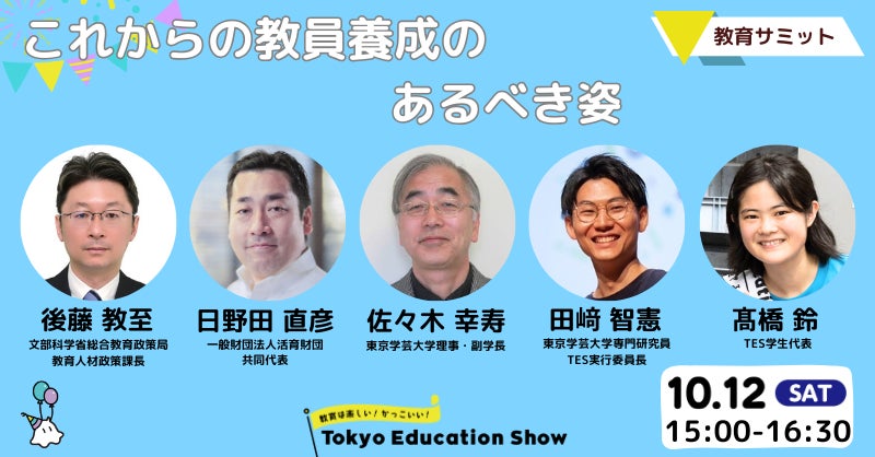 「教育ですべての子どもたちに笑顔の瞬間を」をコンセプトに活動する特定非営利活動法人教育の環(所在地:東京都目黒区、代表理事:鈴木 健太郎)は、2024年10月12日(土)~13日(日)に『Tokyo Education Show』を国立大学法人東京学芸大学 小金井キャンパスにて開催します。イベント入場チケットとプログラム参加チケットを8月31日(土)に公式WEBサイトにて公開しました。
