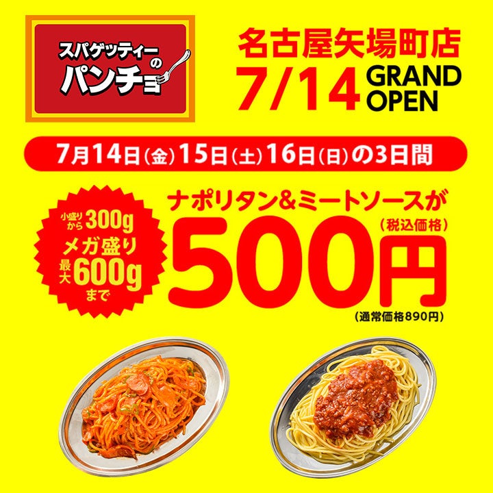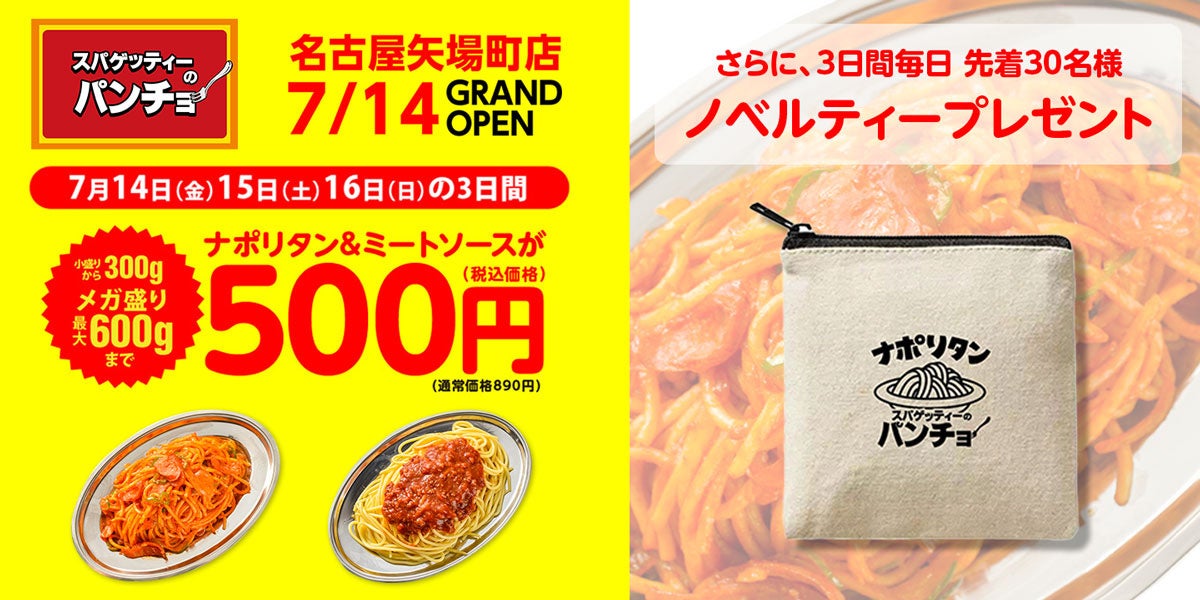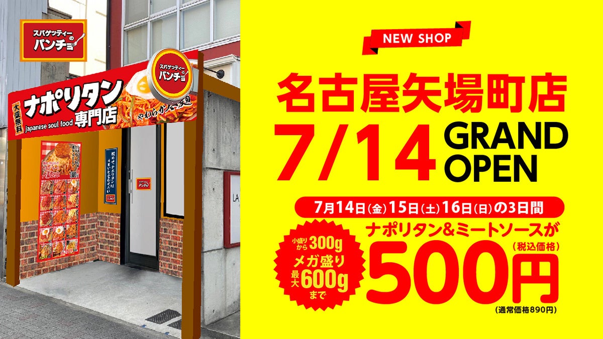 【名古屋にパンチョ初進出】7/14(金)に『スパゲッティーのパンチョ 名古屋矢場町店』が新規オープン。店舗限定の名古屋メシ「鉄板パンチョ」も新登場&500円均一のオープニングキャンペーンを開催!