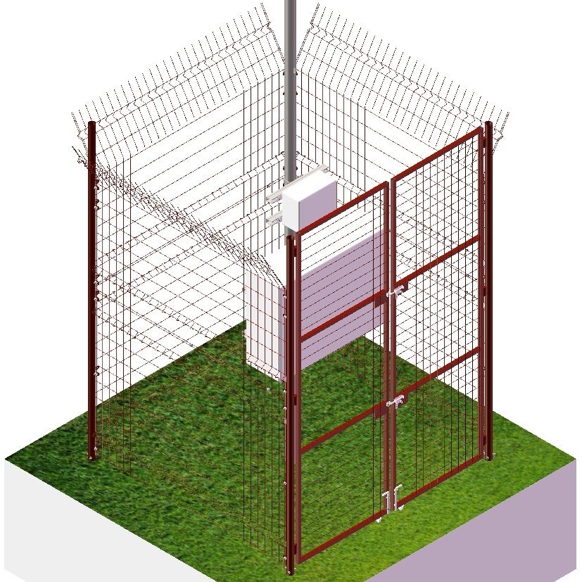 フェンスで引込柱付近を覆う独自の手法により、太陽光発電所のケーブル盗難を対策。高さ3mのフェンスでケーブルが集まる引込柱周辺を囲み、外部からの侵入を防ぎます。盗難者に対し、視覚的にケーブルの盗難が困難だと思わせる効果もあります。