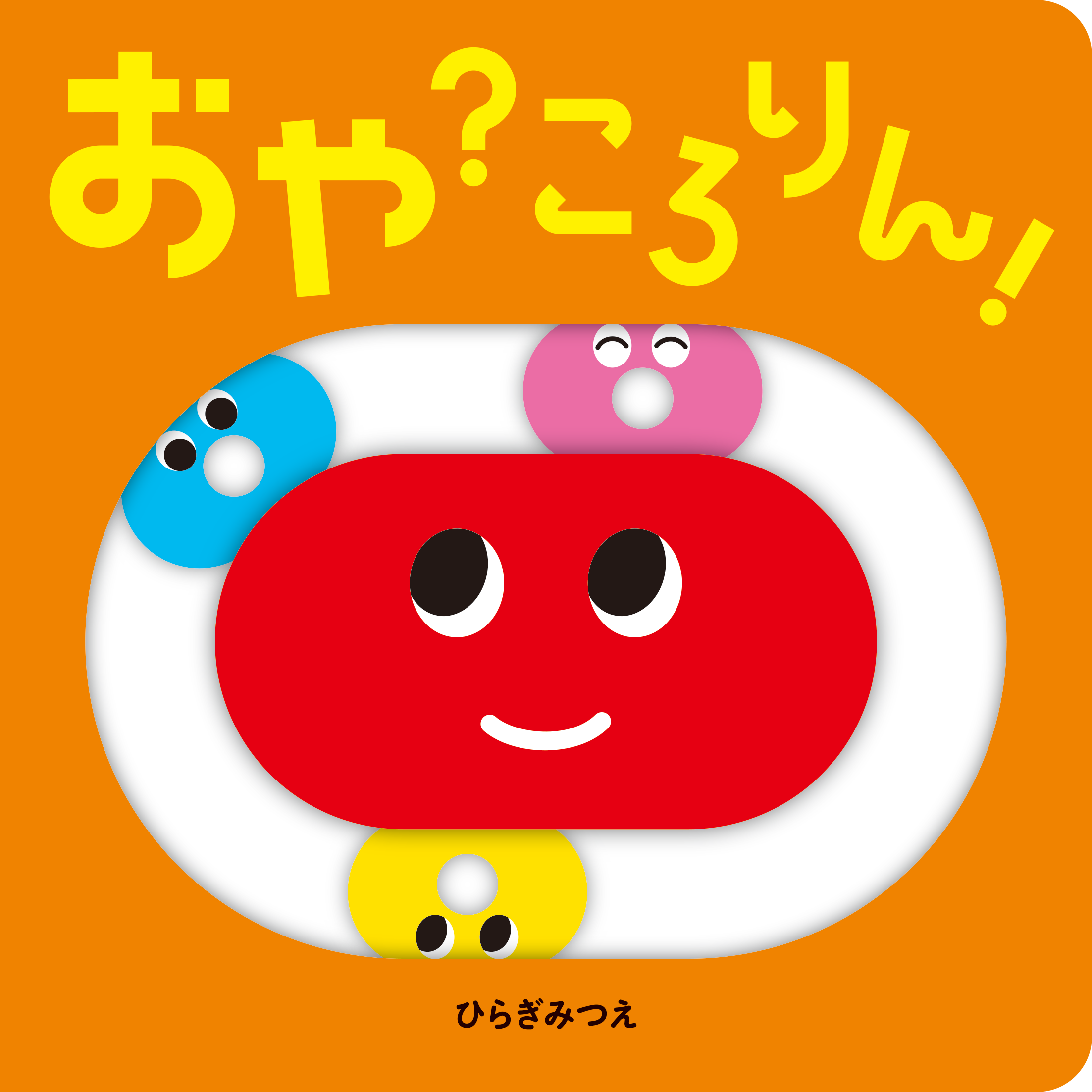 10周年を記念した最新刊『おや?ころりん!』は、このシリーズを代表する絵本『ころりん・ぱ!』に、新機軸のアイデアを加えた絵本です。これまでの作品は、丸いパーツがレールを転がるしかけが最大の特徴でしたが、『おや?ころりん!』は、パーツの形が楕円、三角、四角と様々。「形のちがいを楽しんで欲しい」という作者ひらぎみつえさんの気持ちがこめられた意欲作です。