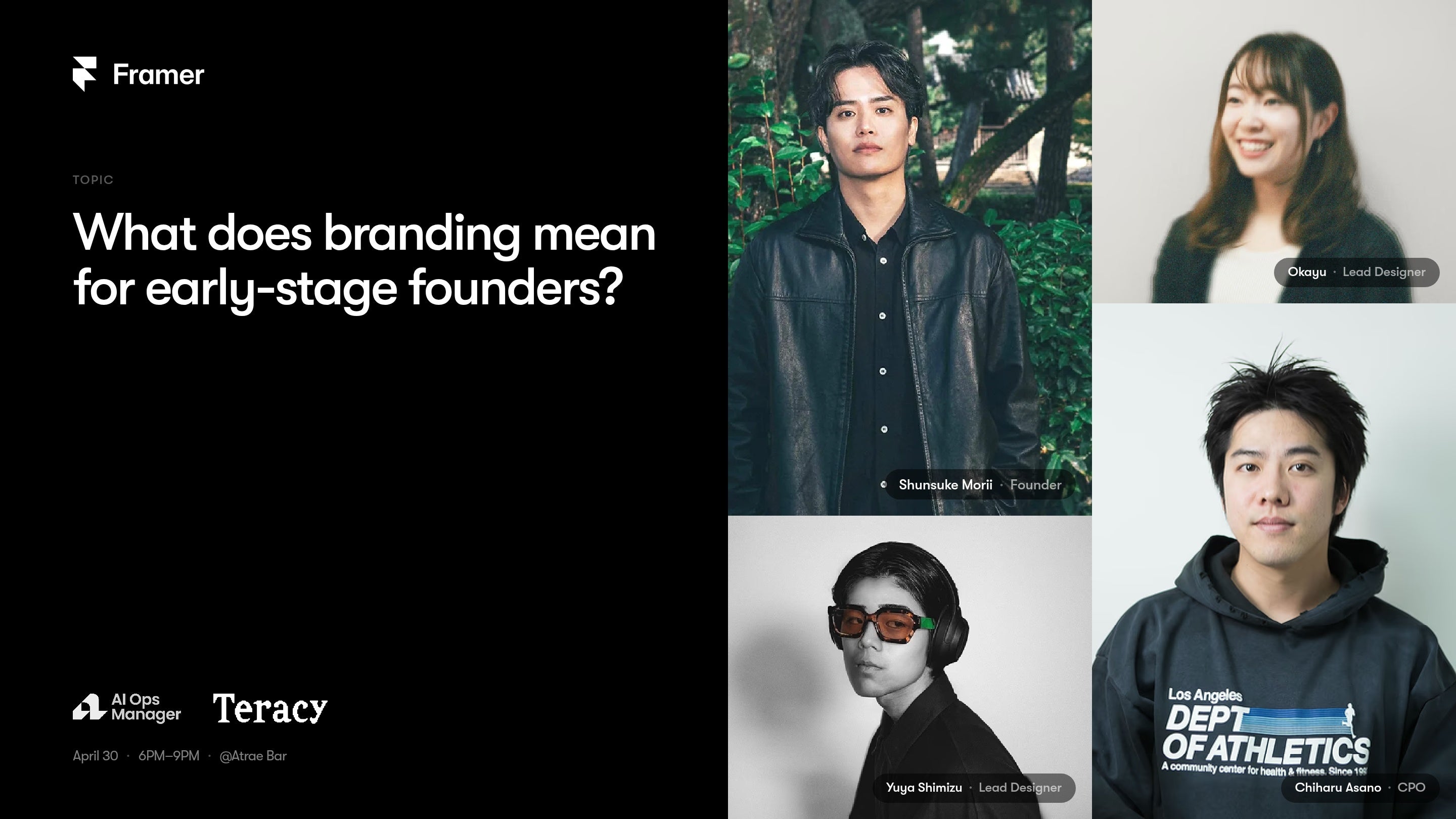 AOM Global Primeの具体的な取り組みの一例として、Webサイトビルダー「Framer」が日本市場に向けて開催するイベントへの支援・登壇を実施しています。