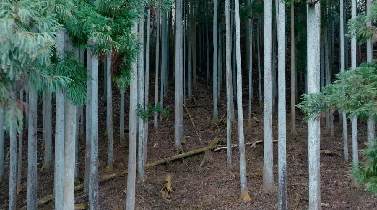 森林内の木々の混み具合に応じて樹木の一部を伐採し、残った木々の健全な成長を促す「間伐」は、土砂災害の防止や生物多様性の保全といった森林の機能を発揮させる役割もあります。間伐材は建築材などに活用されますが、搬出コストや形状などの問題で山に放置された状態になっているものも数多く存在しています。森林保全には、間伐、新たな植林という持続可能なサイクルをつくることが重要であり、そのためにも間伐材の利活用の促進は全国的な課題になっています。