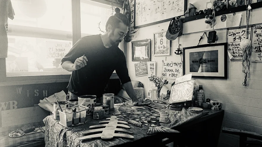 ドローイングをベースに、ライブペイント、版画、映像作品、デザイン、演出など、表現活動は多岐にわたる。特定の手法やジャンル、場所に傾倒することなく、自身の核から沸き上がる感覚に忠実な表現を続けている。1万人近い集客を記録した「ミナカダ祭」(青森の名湯・薬研温泉400年記念祭)での総合演出・プロデュース。10mにも及ぶ2つの大作ごと、全国各地を旅しながら製作・発表した個展「Layered Tripper」、サマーソニックや春風フェスへのオブジェ提供、自身と縁深い温泉地の路地を、ワークショップで制作された600匹の魚作品で飾る「シブニウミガ展」、大畑八幡宮渡御の行列300周年記念祭のプロデュースなど、近年、地域や歴史を巻き込みながらストーリーを作りあげる総合的な活動も増えている。