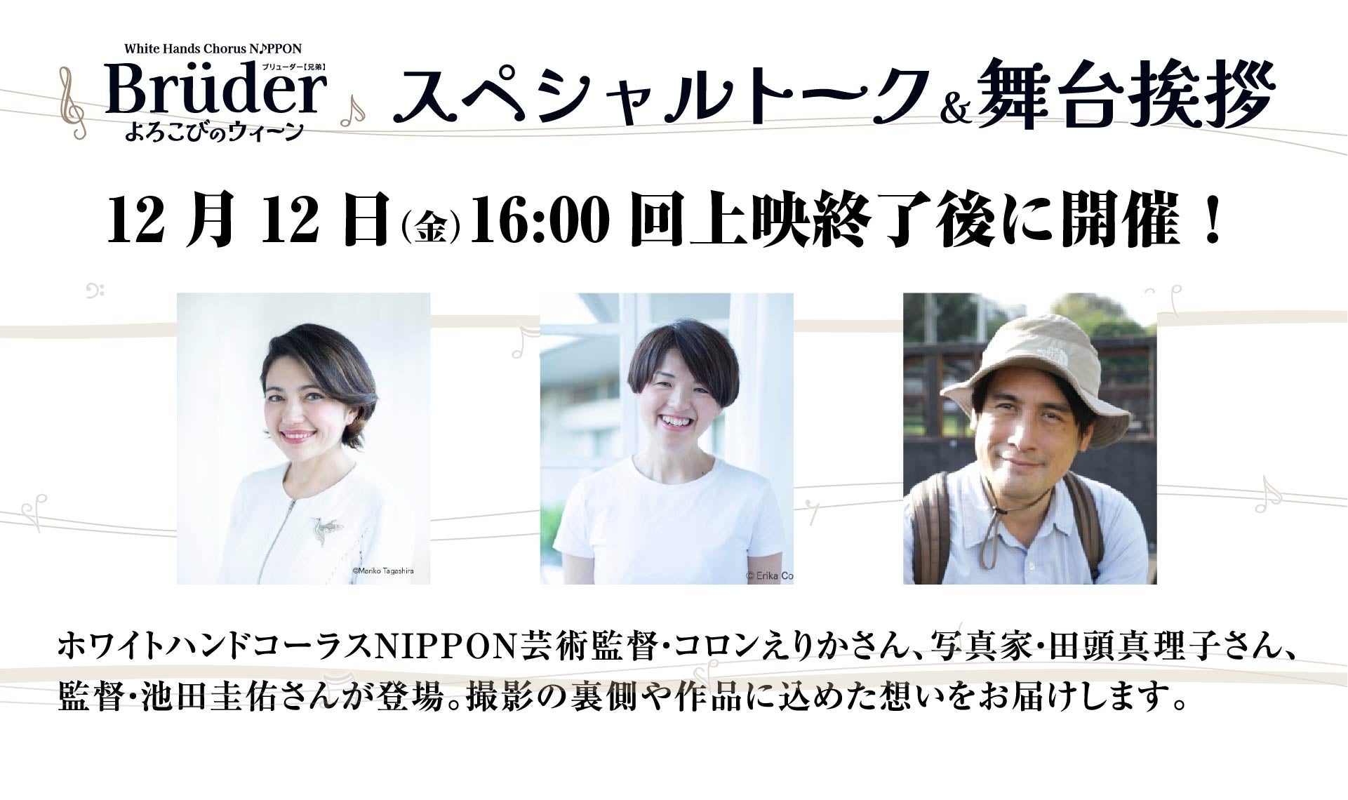 2025年12月12日(金)からアップリンク吉祥寺にて、一般財団法人さわかみ財団と一般社団法人El Sistema Connectが共同制作したドキュメンタリー映画『ホワイトハンドコーラスNIPPON ~Brüder よろこびのウィーン~』(文部科学省選定作品)が公開されます。公開初日の上映後には、ホワイトハンドコーラスNIPPON(以下WHCN)芸術監督:コロンえりか氏、写真家:田頭真理子氏、本作監督:池田圭佑氏によるスペシャルトークショーを開催いたします。