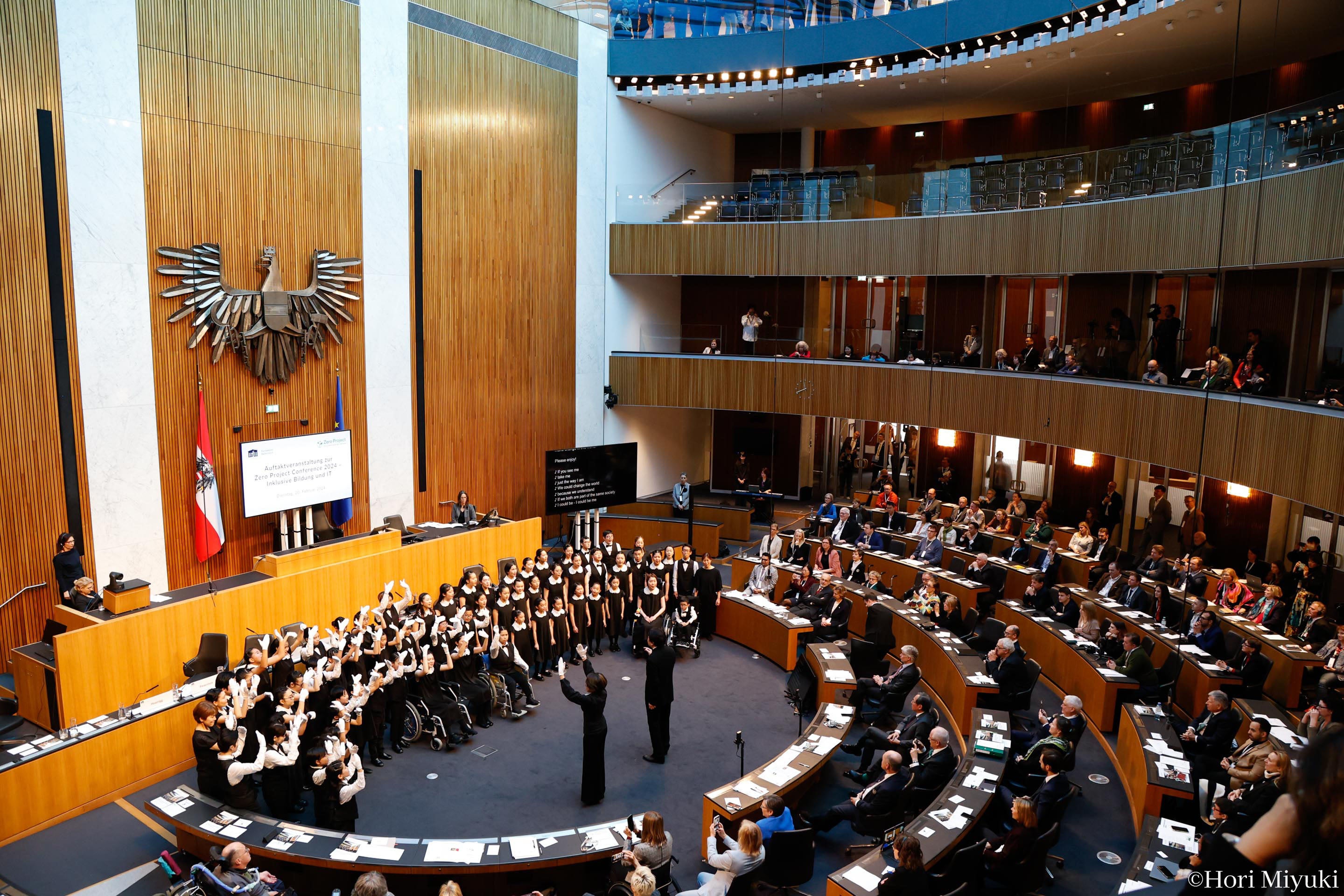 2021年のクリスマスコンサートでの「第九」への挑戦から3年─。2024年にベートーヴェン「第九」初演の地オーストリア・ウィーンで公演を実施。その活動が世界に認められ、バリアフリーの国際賞「ゼロ・プロジェクト・アワード」を受賞し、“誰もが歌える・見える音楽”として注目を集めました。また、写真家・田頭真理子氏が光を指先に宿し、子どもたちの「手歌」を撮影した写真展「第九のきせき」も同時開催。声で奏で、手で歌い、平和を願う─ その軌跡を追いました。