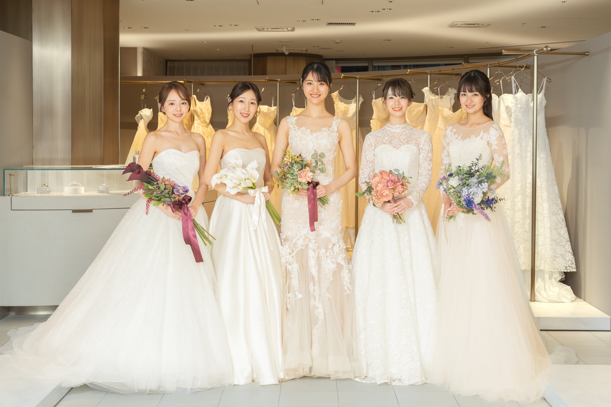 最終審査では、5名のクイーンそれぞれに合わせたウエディングドレス、ヘアメイク、ブーケでのコーディネートし、より “ その人らしさ ” を大切にした演出を行います。