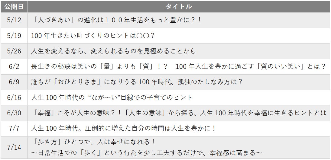 100年生活者研究所では毎週金曜日に、「人生100年時代」をテーマとしたニュースを配信しています。記事の詳細は下記URLにてご確認ください。