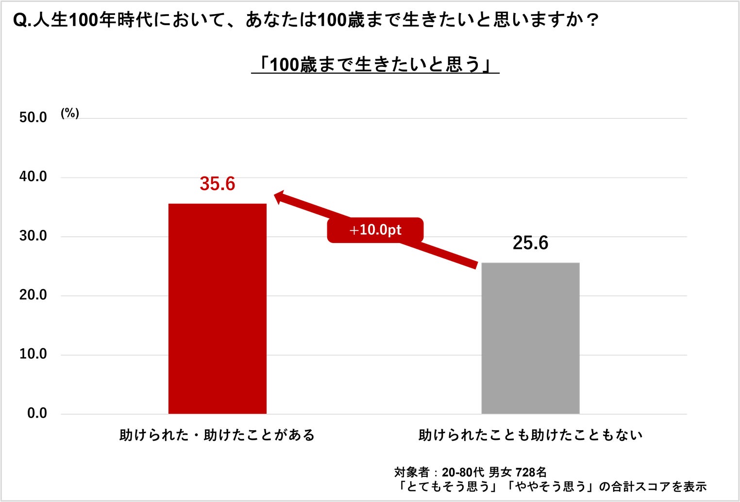 3. 「100歳まで生きたい」気持ちも、助けられた/助けた経験がある人は、ない人と比べて1.4倍高かった